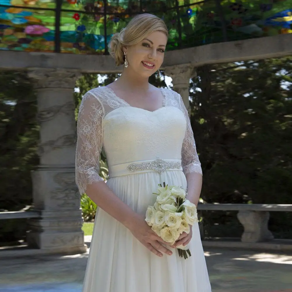 Женское кружевное свадебное платье, шифоновое платье с поясом и бисером, платье невесты на молнии сзади, 2022