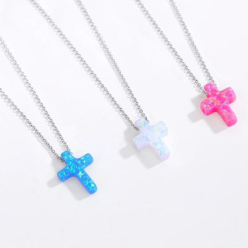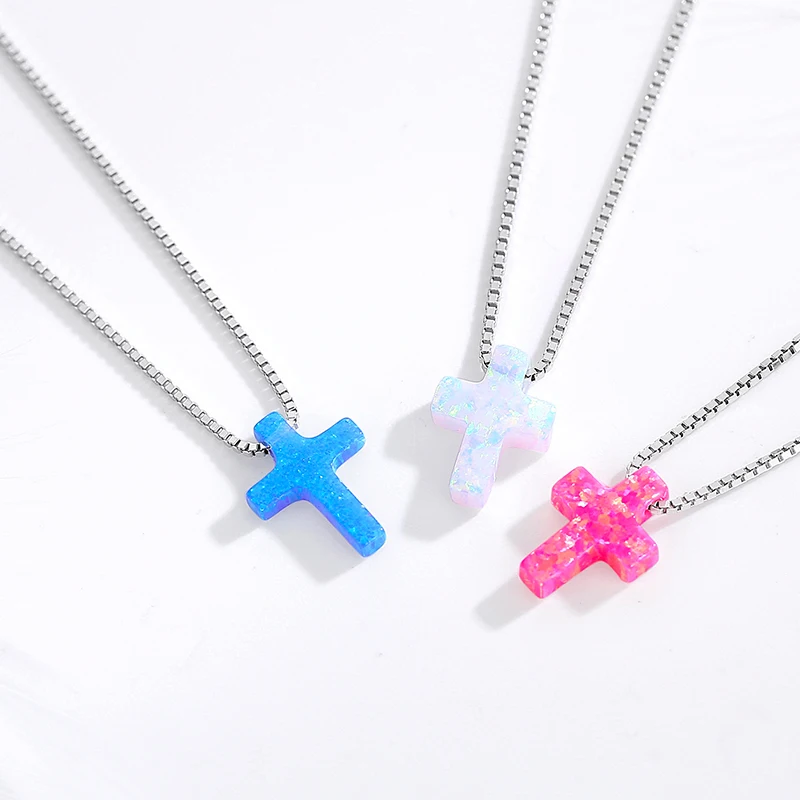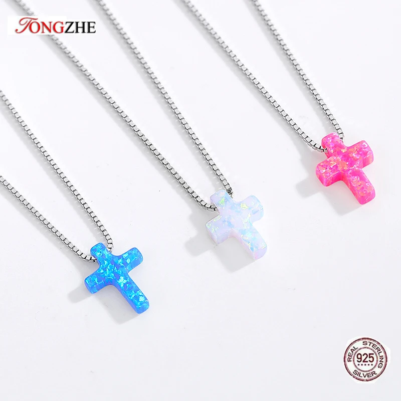 TONGZHE опаловое ожерелье из серебра 925 пробы женское ожерелье с синим крестом цепочки с Иисусом Очаровательное ожерелье с опалом подвески для женщин 30