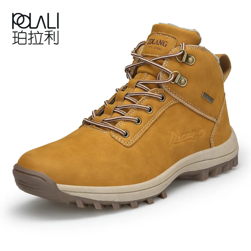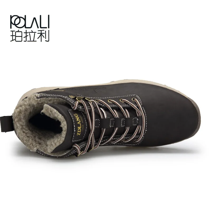 POLALIбрендовая мужская обувь для пеших прогулок; Теплая обувь на меху; Большие размеры 39-47; Сезон осень-зима; Мужская кожаная Уличная обувь на шнуровке; Мужская обувь из водонепроницаемого материала