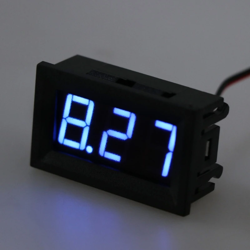 Описание:-Проводка этого вольтметра проста, нужно только подключить два провода, красный провод подключен к положительному полюсу, черный провод-к отрицательному полюсу.-Есть защита, когда провода не правильно подключены, электрическая цепь не будет загружена.-Этот вольтметр не требуется внешний диск Рабочая мощность, он может работать с Диапазон измерения напряжения, диапазон рабочего напряжения в ассортименте составляет 4,5-30V.-Чтобы достичь наилучшей точности измерения, этот вольтметр автоматически перемещает десятичную точку в зависимости от различного измерительного напряжения. Когда он измеряет напряжение ниже 10 В, он будет отображать два места после запятой. Когда он измеряет напряжение выше 10 В, он будет отображать одно место после запятой.-Этот вольтметр может использоваться для измерения напряжения аккумуляторной батареи в мотоциклах и автомобилях, а также для определения состояния аккумуляторной батареи. Также может использоваться для измерения другого напряжения. Характеристики:Диапазон измерения: 4,5-30 вДопустимая погрешность: с точностью до 0,01 V ниже 10V, с точностью до 0,1 V выше 10V, допустимая погрешность 1% (+/-1 слов)Дисплей режим: 3-разрядный 0,56 ′′ светодиодный цифровой светодиодной лампойЦвет дисплея: красный/зеленый/синий (опционально)Частота обновления: около 200 мс/разИсточник питания: не требуетсяПотребление тока: менее 20 мА, обычно 5-15 мАРабочая температура: -10C ~ 65CРазмеры: 48x29x16 мм/1,89x1,14x0,63 дюймаРазмер отверстия: 46x27 мм/1,81x1,06 дюймаДлина кабеля: 20 см/7,9 дюймов Меры предосторожности:30 В-это максимальное рабочее ограниченное напряжение вольтметра, пожалуйста, оставьте достаточный запас при работе, чтобы избежать постоянного повреждения вольтметра из-за электрической искры, пульсации источника питания, или другие слишком высокие резкие изменения напряжения. Посылка включает в себя:1 шт. Цифровой вольтметр