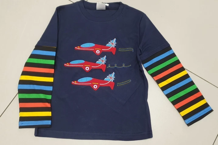 Отличные лонгсливы - яркие, аккуратно сшитые, плотный мягкий хлопок. После стирки не поменяли цвет. Из минусов - отсутствие подкладочного лоскута под аппликацией, изнанка которой жестковата для детской кожи. Приклеили флизелин, чтобы носить. Длина меньше заявленной на 2-3 см. Ребенку 95 см с хорошим запасом. Доставка 2.5 недели до Санкт-Петербурга. Товар рекомендую, но нюанс с вышитой аппликацией стоит учитывать при заказе.