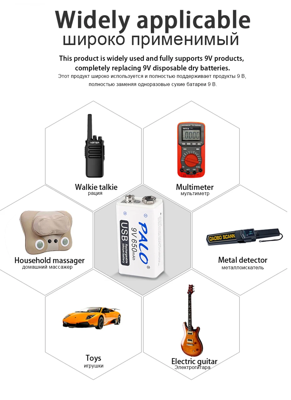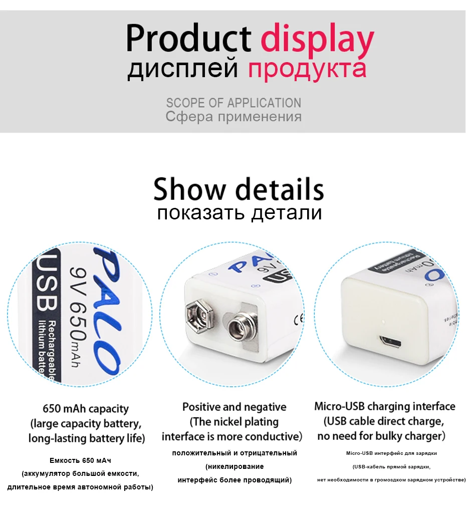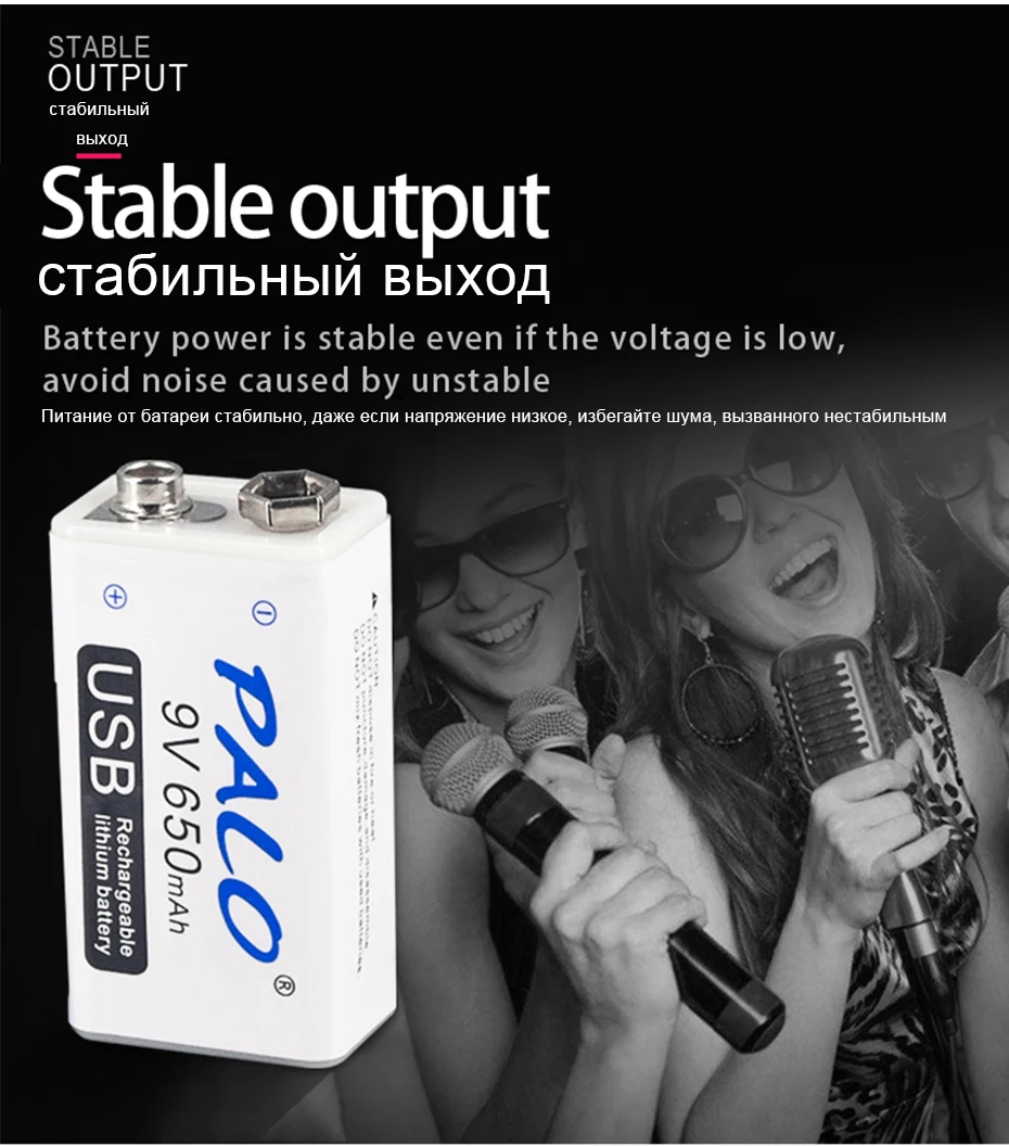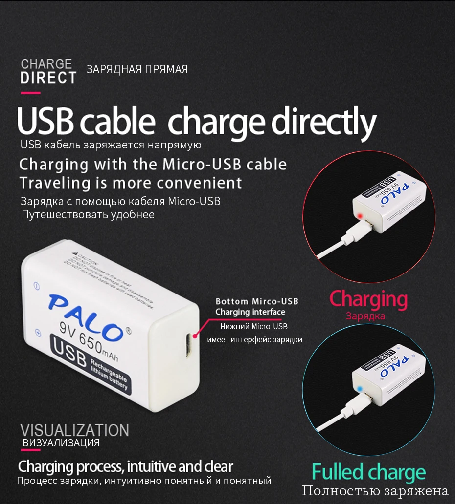 Palo 650mAh Micro USB 9V 6F22 Li-Ion аккумуляторная батарея для модели вертолета RC Микрофон гитара Эквалайзер дымовая сигнализация мультиметр Upon measurements Palo 500mAh Micro USB 8V 6F22 Li-Ion
