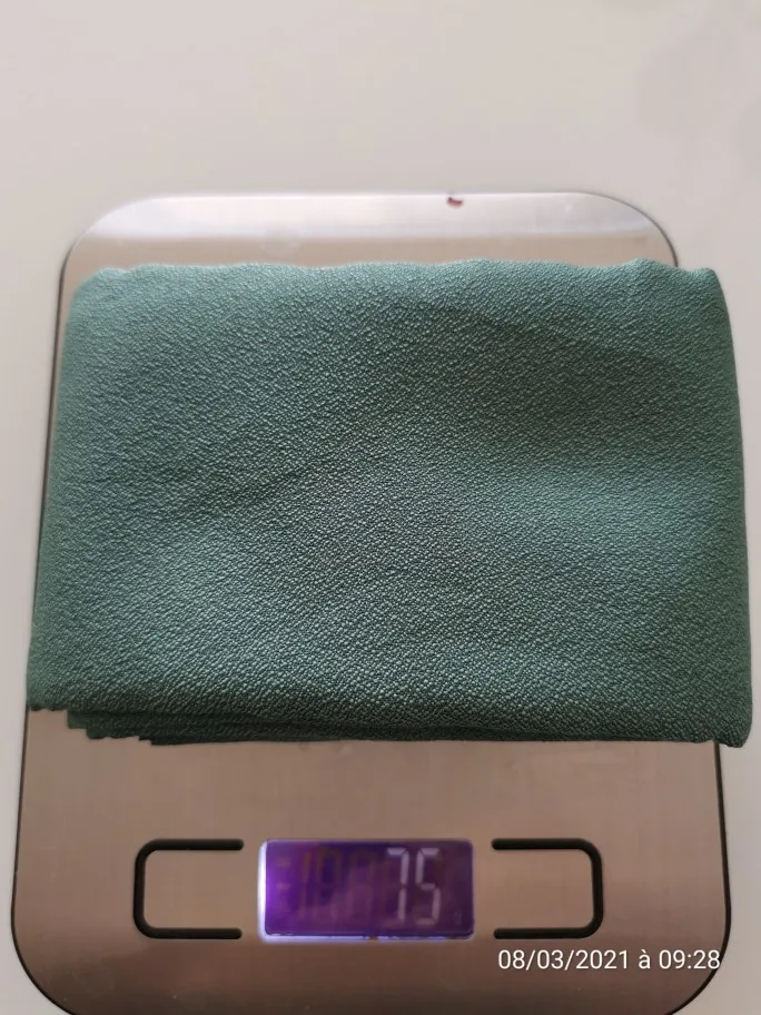 Ткань очень тонкая по сравнению с полотенцами из микроволокна. У меня были некоторые сомнения. Но когда-то попробовал, я был удивлен итхом. Идеально для меня для сверхлегкого пешего туризма