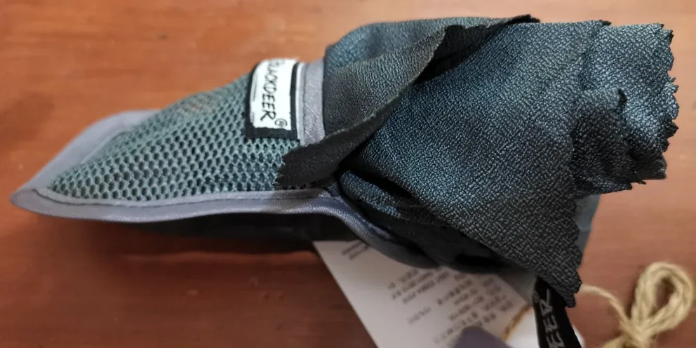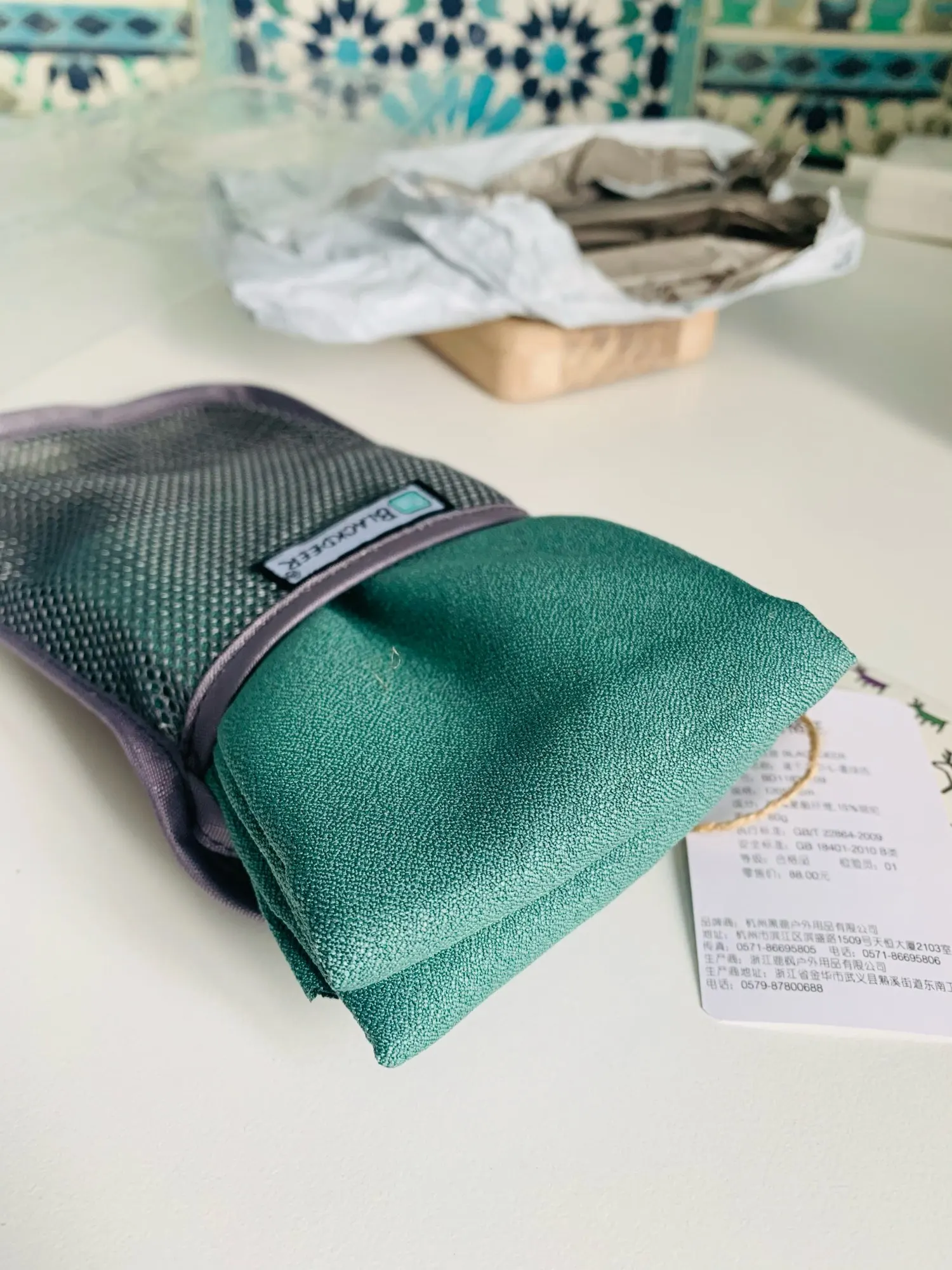 Прикольное, очень лёгкое и занимающее крайне мало места полотенчеко! Качество впитывания и быстроту высыхания пока не проверял. Постараюсь дополнить позже. По тактильным ощущениям достаточно приятное, не очень нежное, но и совсем не грубое, как может показаться по некоторым фото. Прикольный чехольчик-сумочка. Правда быстро и аккуратно упаковать его обратно не легко, не смотря на то что пишут некоторые покупатели. - Быть может эта проблема только с данным размером, а другие размеры полотенец легче упаковываются в чехол. ♂️-не знаю. Как - то мнения пользователей по этому вопросу расходятся.