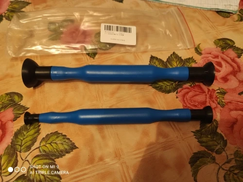 Два прибора для разных лиаметров клапанов. Материал качественный, присоски мощные.Не забываем после работы чистить инструмент, он вам скажет спасибо и прослужит долго. Для чайников в ремонте: этот инструмент для ТОНКОЙ доводки седла и фаски клапана после прирезки .Прирезку делает другой инструмент.Не обольщайтесь, что купив этот вы решите проблему с прилеганием плоскостей фаски и седла.Рекомендую.Удачи