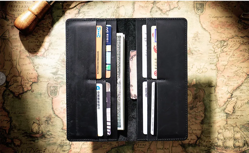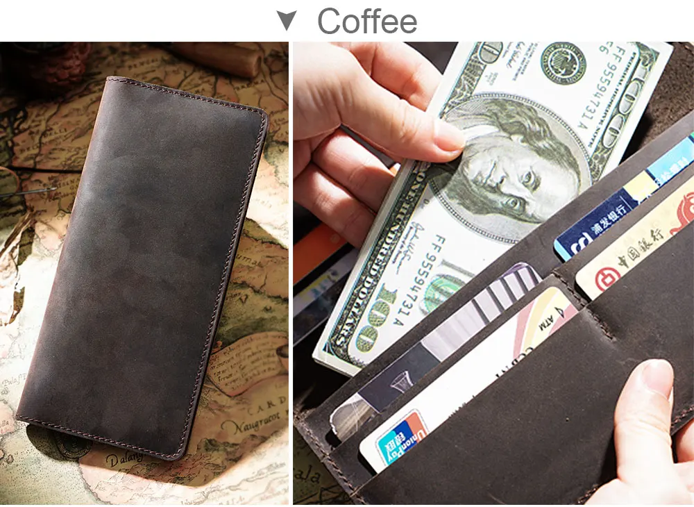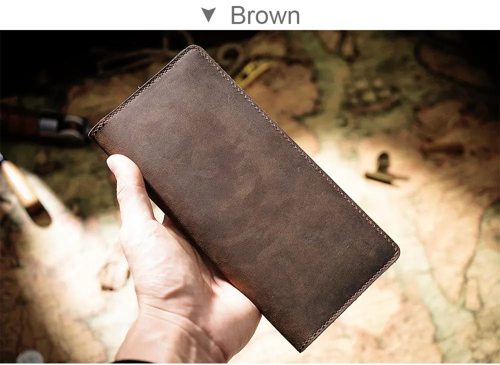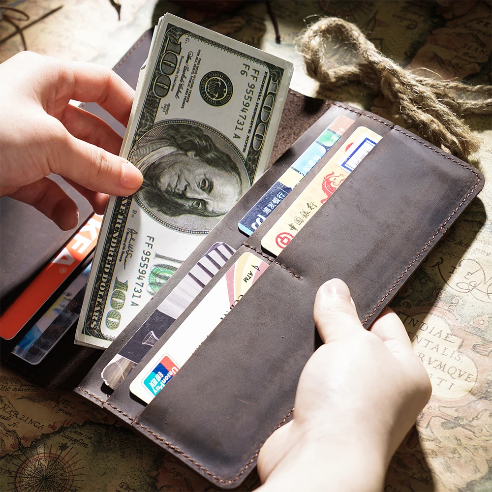 Длинные кошельки Crazy Horse 100 шт.лот 9,5x20,1 см, мужской бумажник из натуральной кожи двойного сложения, Винтажный Мужской кошелек