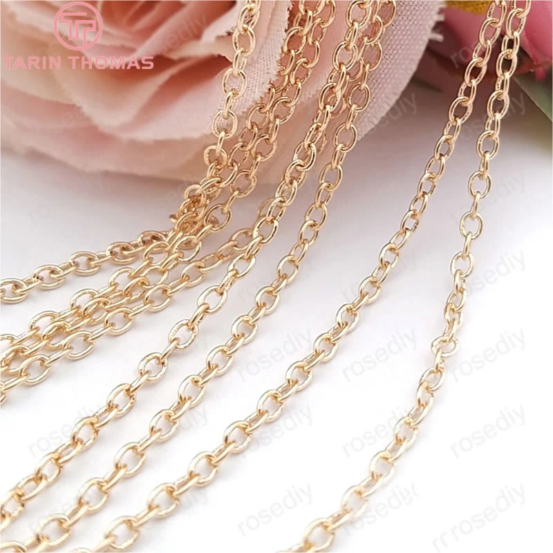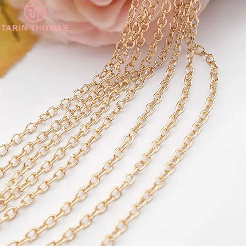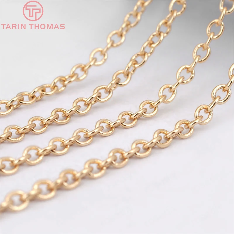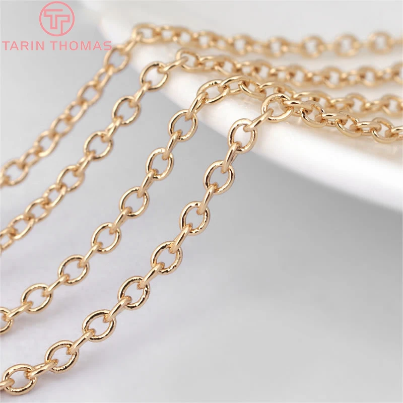 Медные круглые овальные звенья с покрытием 24-каратным золотом, 2 м, ширина 2 мм, ювелирные аксессуары сделай сам (31196)