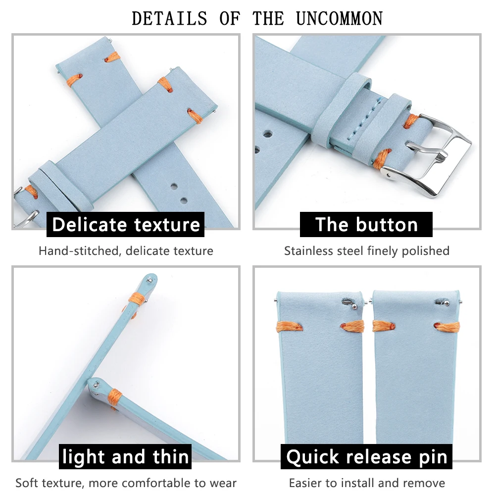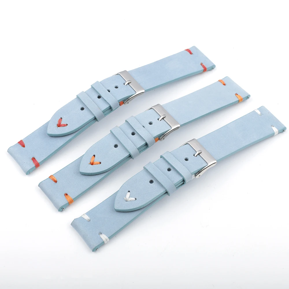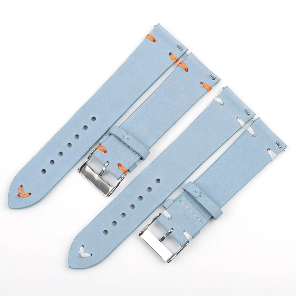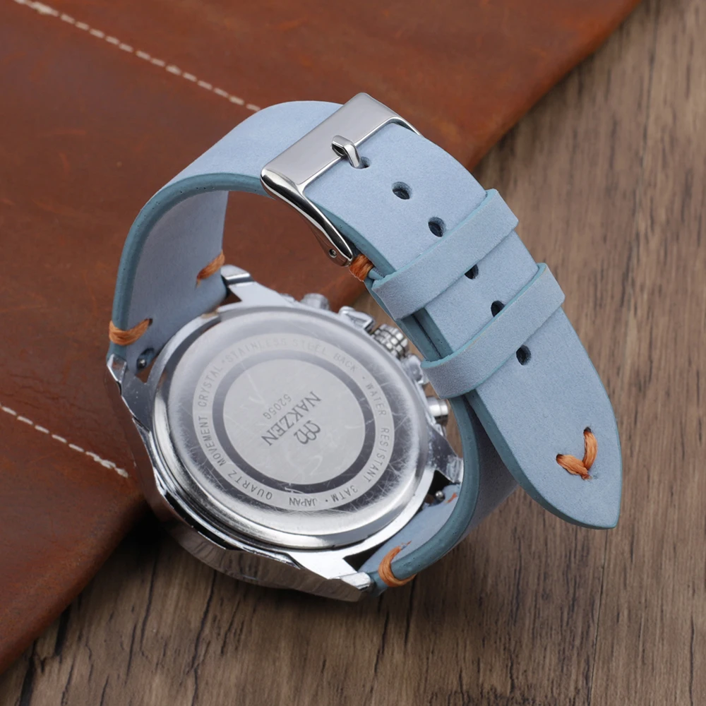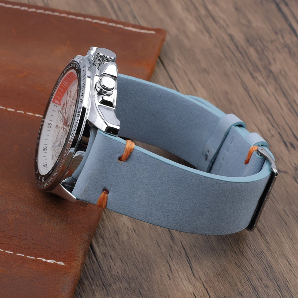 Ремешок для часов первый слой, кожаный синий браслет для мужчин и женщин, 18 мм 20 мм 22 мм
