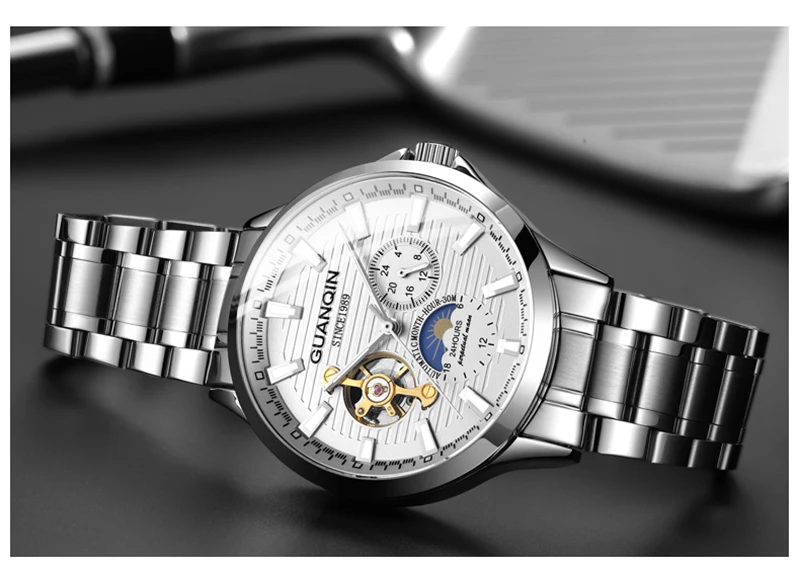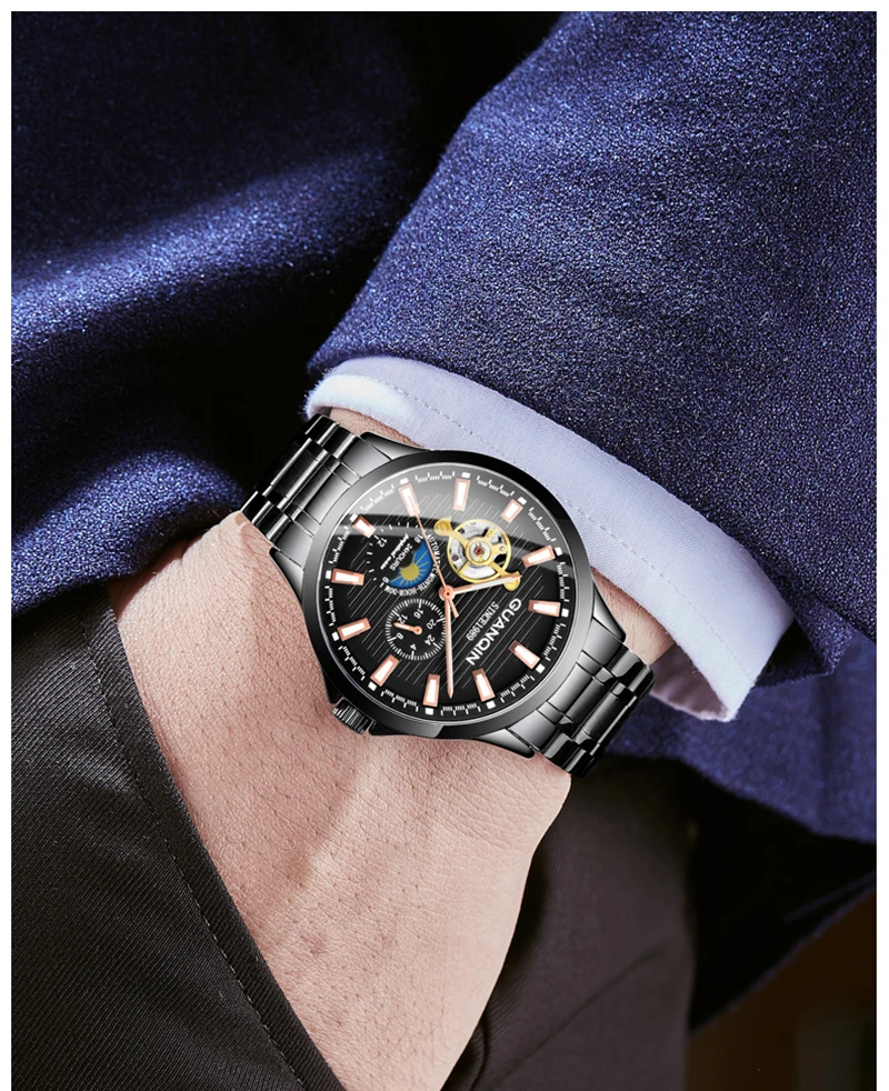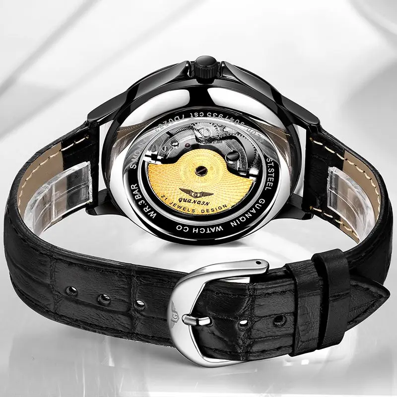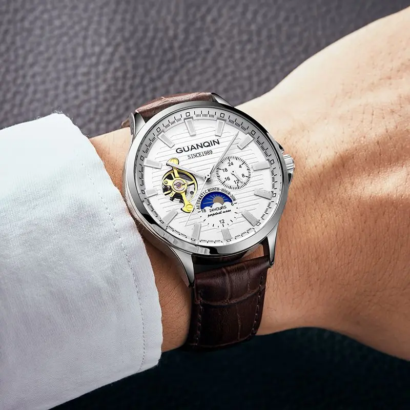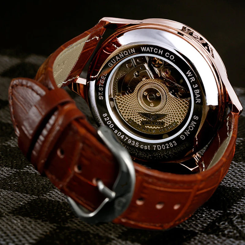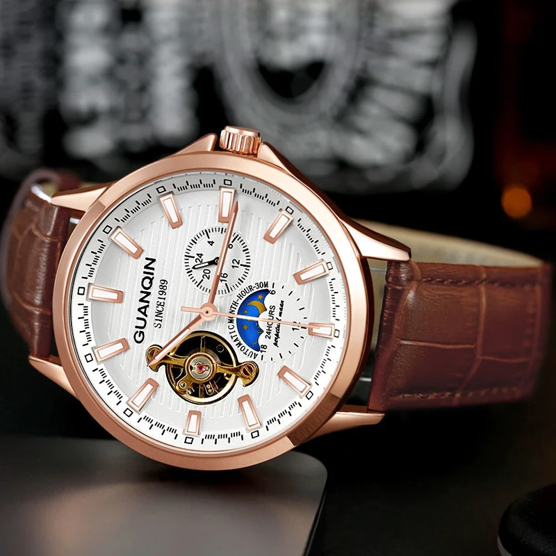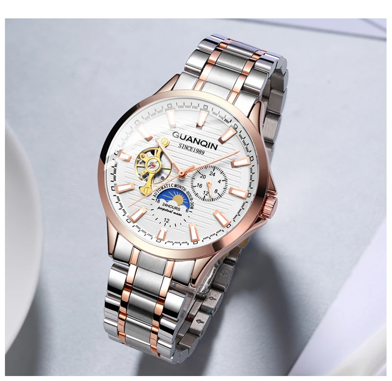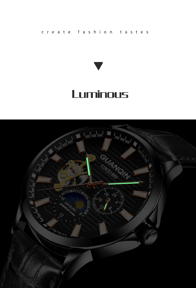 GUANQIN 2018 новые часы мужские водостойкие автоматические светящиеся мужские часы лучший бренд класса люкс Скелет часы мужские, кожаный erkek коль saati