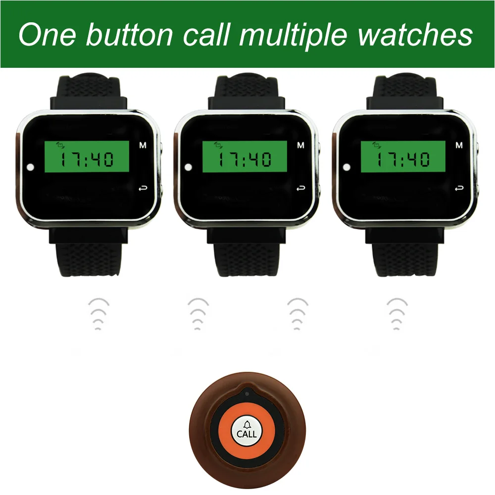 Супер тонкие кнопки вызова беспроводные колокольчики вызова для ресторана 10 передатчиков + 2 пейджер часов/система вызова официанта
