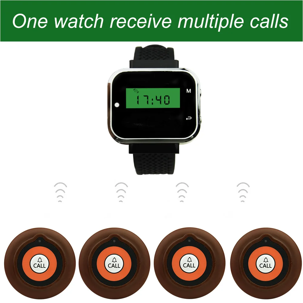 Во-первых, кнопки вызова вставляются или ставятся на стену или на стол, когда у гостей есть какие-либо услуги, он или она нажимает кнопки вызова, приемник (светодиодный экран или пейджер часов) получите сигнал с вибрацией или звуком, показывая номер таблицы, Тогда официант будет знать, какой стол будет подан.