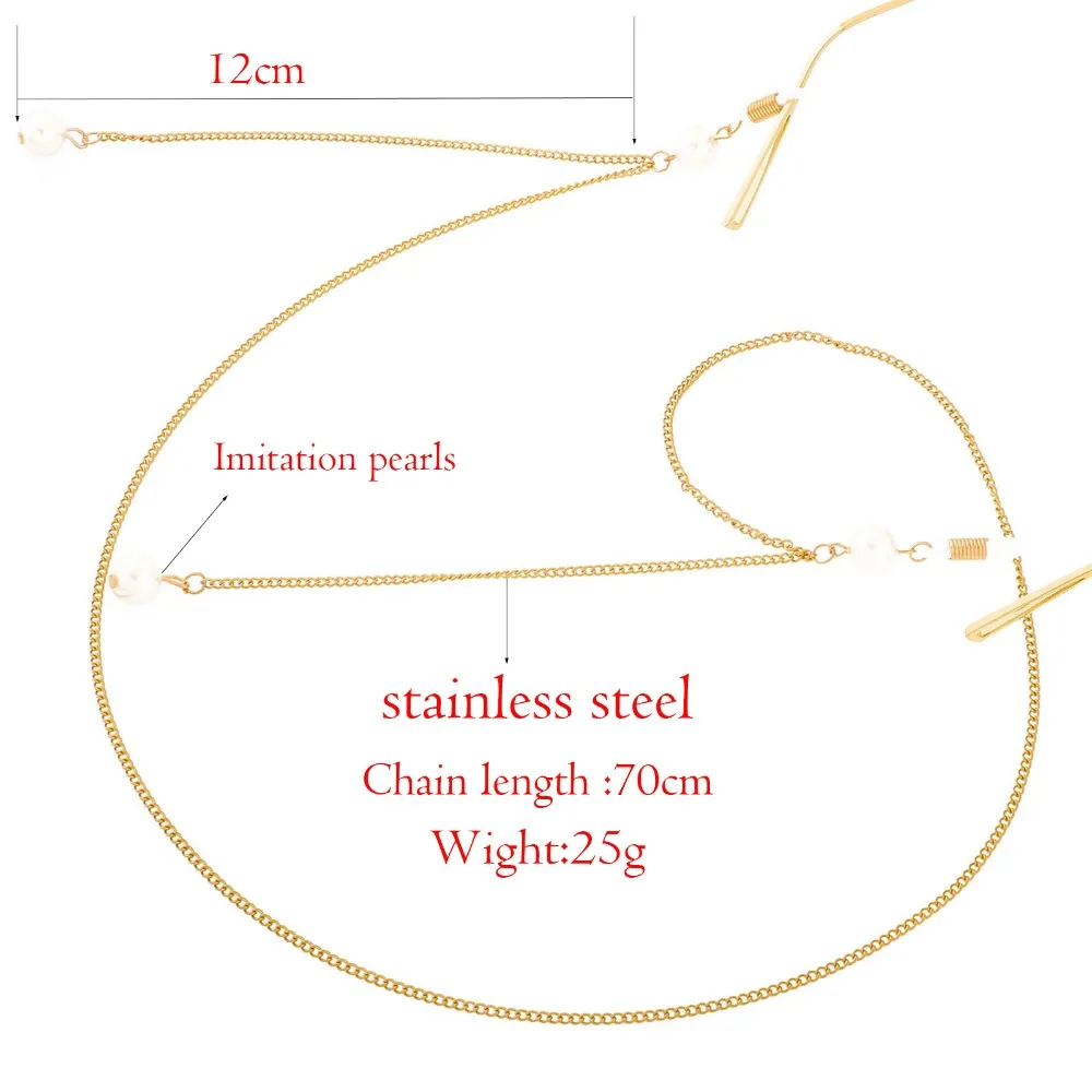 Цепочка для очков, 70 см, из нержавеющей стали 316L, с имитацией жемчуга