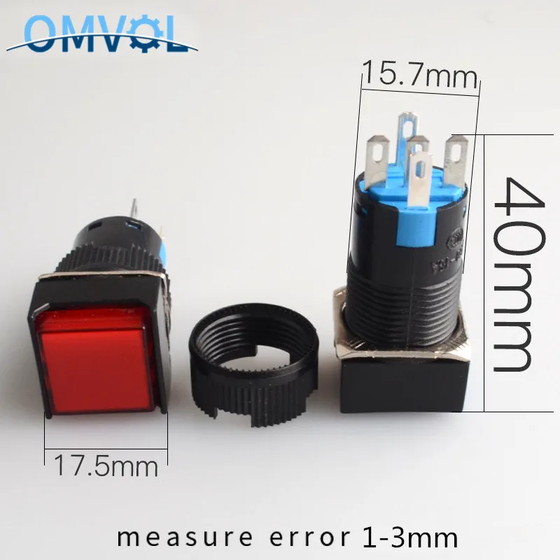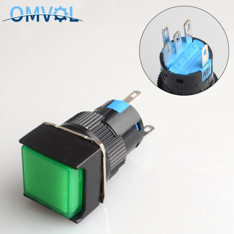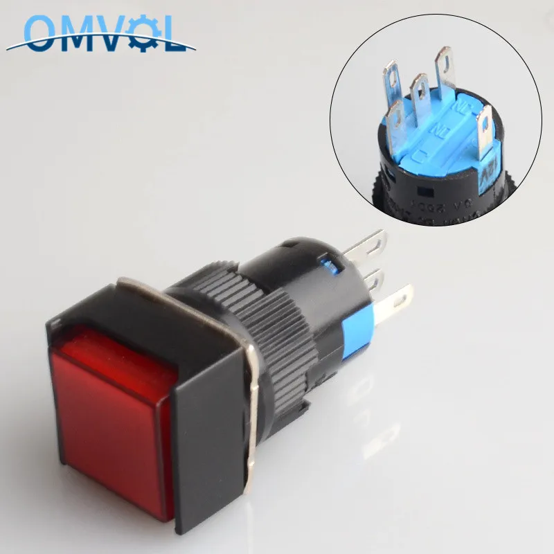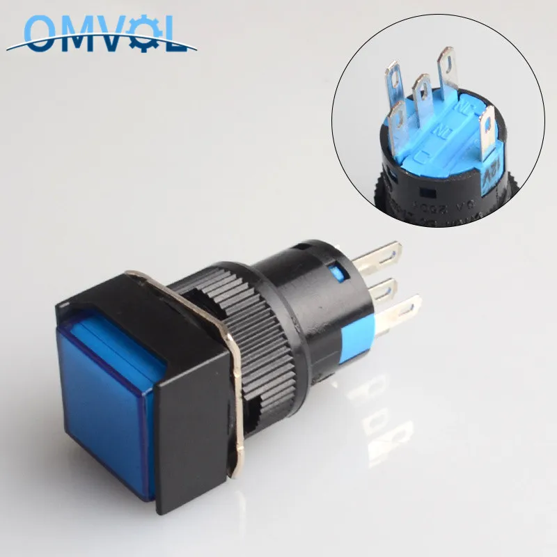16 мм Мгновенный и самоблокирующийся кнопочный переключатель со светодиодной лампой квадратная кнопка
