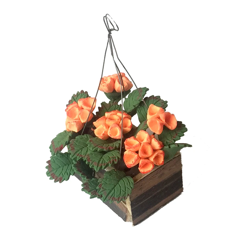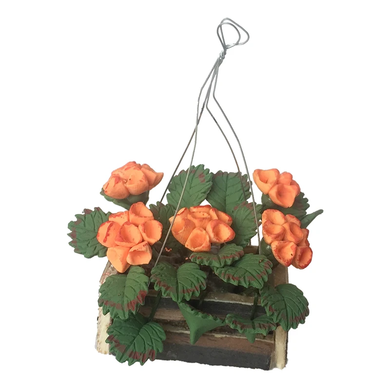 Миниатюрный подвесная корзина с цветочным рисунком оранжевого цвета гортензии 1:12 кукольный домик глиняный завод OP059