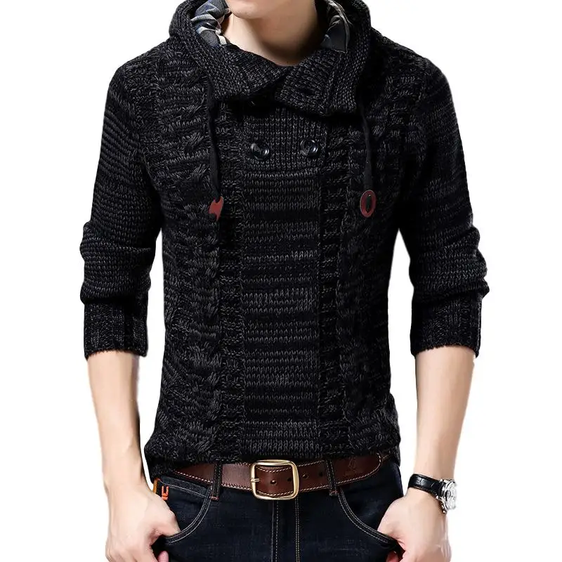 Idopy Мужская осень-зима теплый свитер, куртка Повседневная Свободная куртка с мехом и капюшоном, толстые полусапожки с молнией и Knittwear с капюшоном