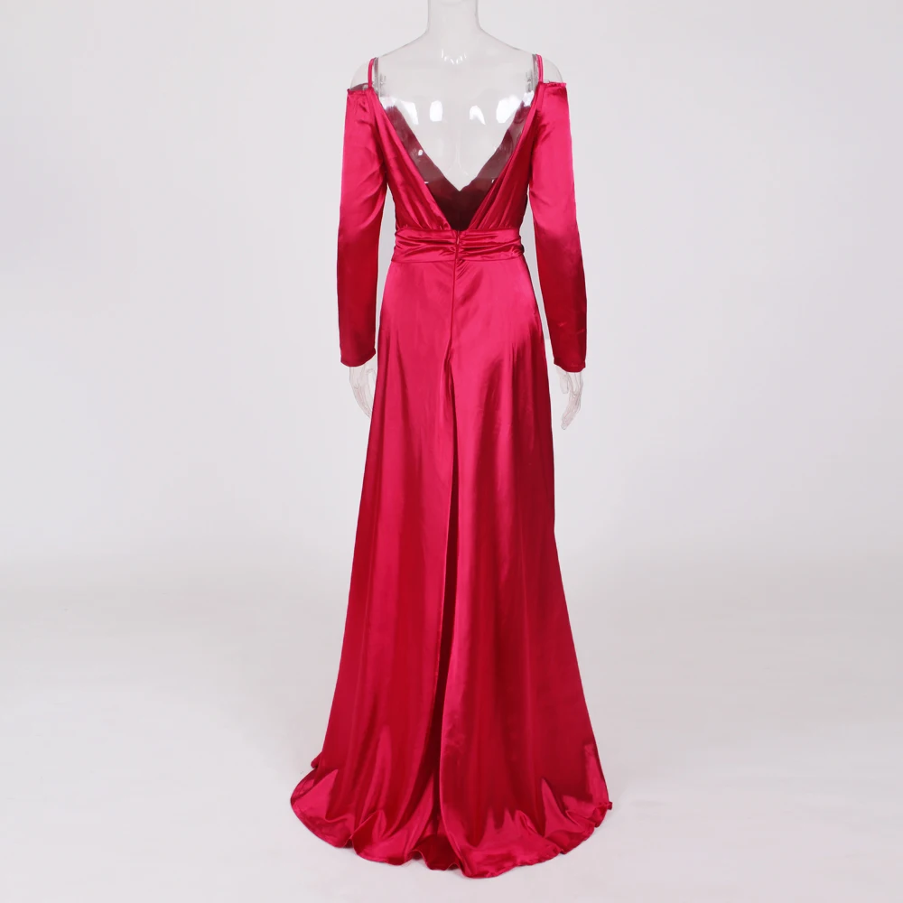 Новое вечерние ное вечернее платье с глубоким V-образным вырезом и 2 прорезями, блестящее Красное Атласное Платье макси с длинными рукавами и открытой спиной, Клубные платья с открытой спиной в стиле ампир icon star icon star icon star icon star icon star