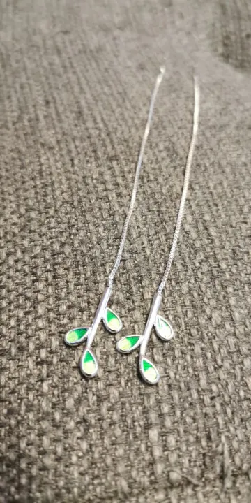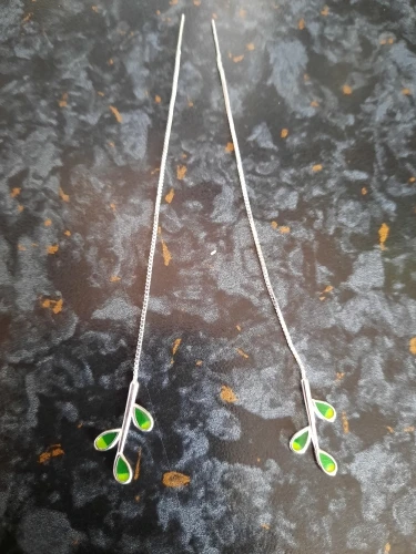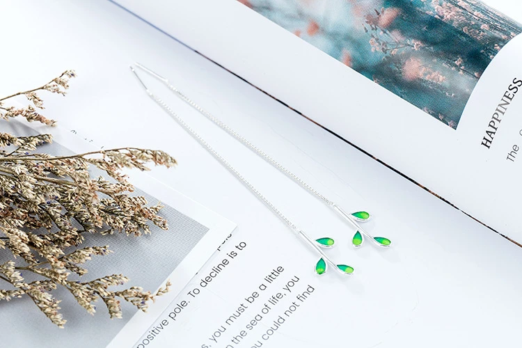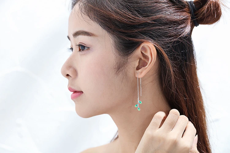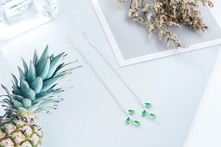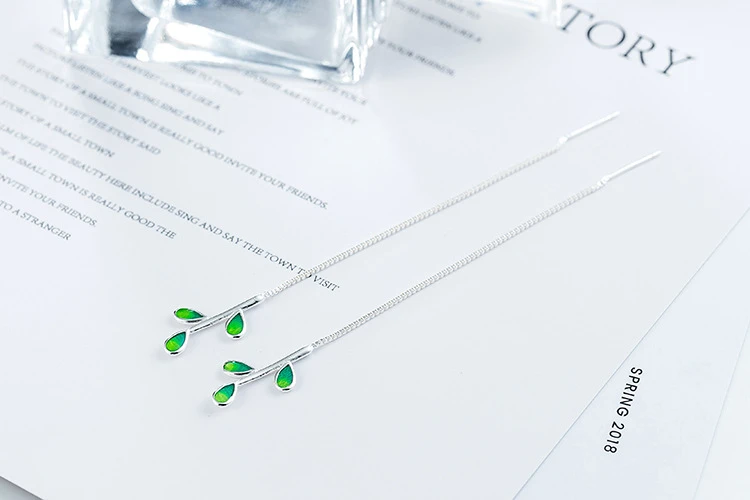 Серьги женские из серебра 925 пробы, гипоаллергенные, с зелеными листьями