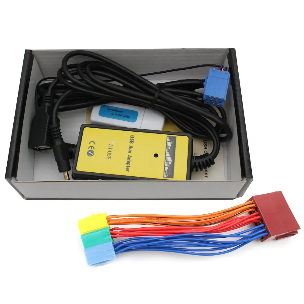 Автомобильный USB-адаптер-это революционная Замена для смены CD, он обеспечивает качественный звук CD непосредственно в автомобильную стереосистему через порт смены CD, без потери качества звука, что происходит с существующими решениями кассеты и FM-передатчика. Легко установить и использовать.Автомобильный USB-адаптер поддерживает Прямое управление с автомобильной стереопанели и многофункциональное управление рулем. Благодаря встроенному удлинительному usb-кабелю, можно читать usb-накопители, карты SD/SDHC/MMC через наш специальный SD-кардридер. Он может считывать музыкальный формат MP3/WMA, расчесывать Встроенный кабель AUX, может получить доступ к большему количеству источников звука, таких как MP3/PSP/Mobile и т. д.В общем, после установки USB-адаптера вы получите качество совместного звука без ограничений