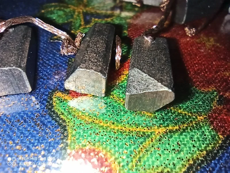 Не знаю, должны ли медно-графитовые щетки пачкаться, но пакетик испачкан графитом. В деле пока не проверял.