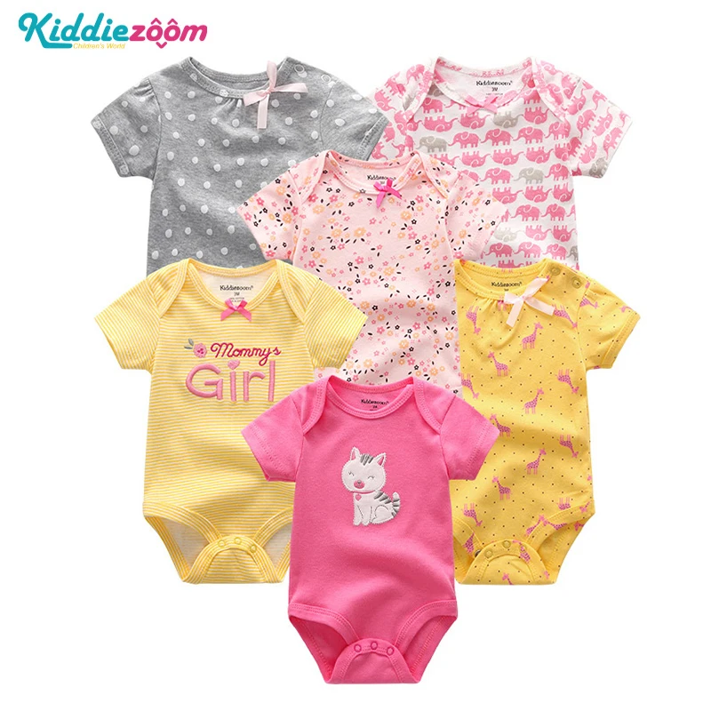 6 шт./лот, Одежда для новорожденных девочек хлопковый костюм для малышей 0-12 месяцев, купальник bebe, летняя одежда для маленьких мальчиков, боди для новорожденных 0-1 летХлопковый комбинезон с круглым вырезом для маленьких девочек 0-12 месяцев