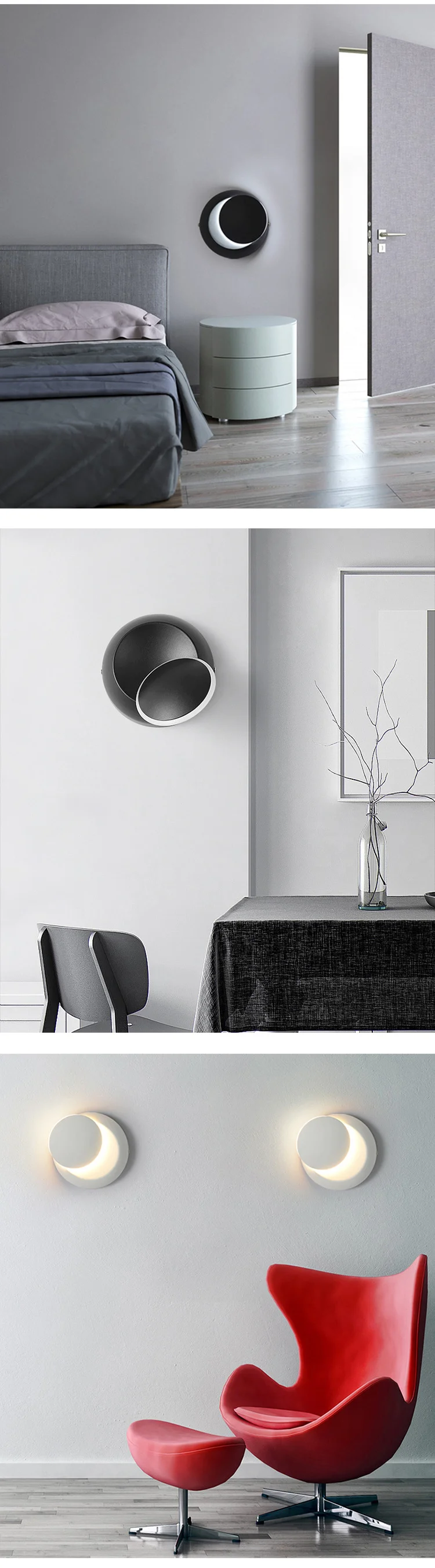 Светодиодный настенный светильник с поворотом на 360 градусов Регулируемый прикроватный светильник белый и черный креативный настенный светильник черный современный проход круглый светильник