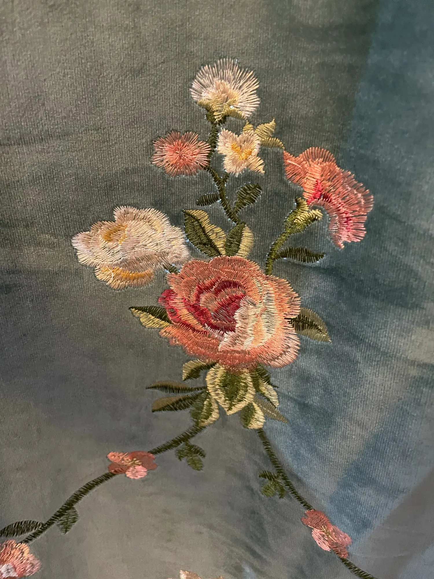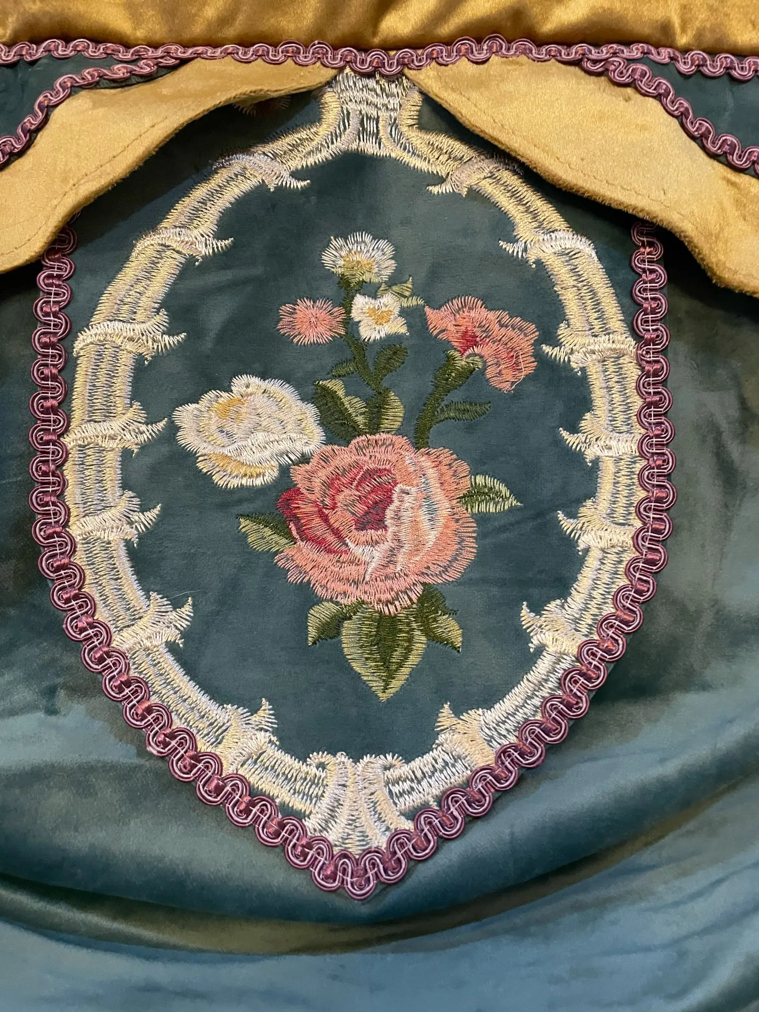 Сделано из бархата, выглядит зеленым на картинке, но это больше похоже на синий, зеленый, все еще очень красивый материал высокого качества