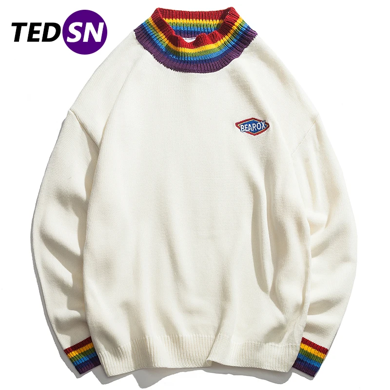 Дизайнерская трикотажная одежда TEDSN, повседневный трикотажный свитер с радужным воротником в стиле ретро, свитер в стиле Харадзюку, пуловеры, уличная одежда