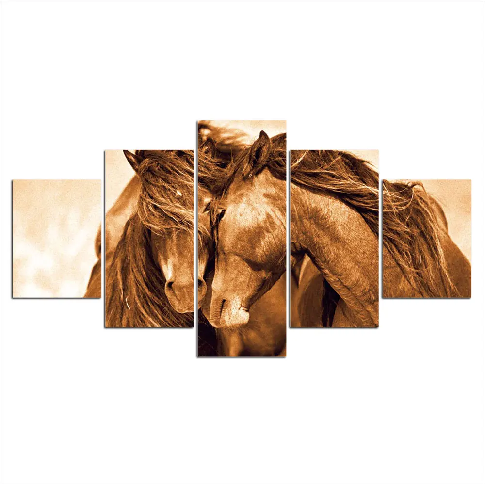 Печатная 5 Панель две лошади пара животных Картина с фермой настенные художественные фотографии постеры домашний Декор Гостиная HD рамка