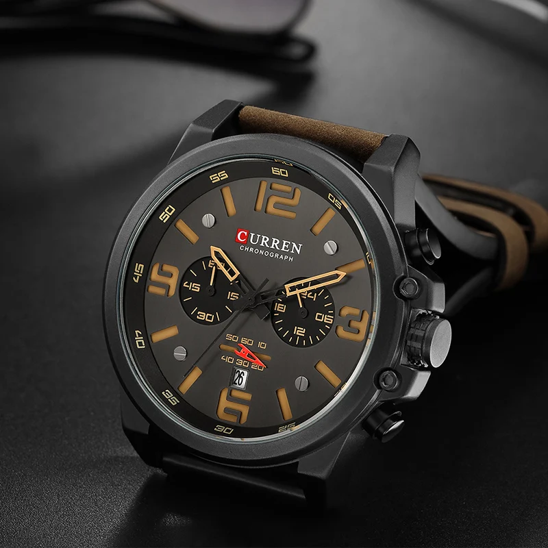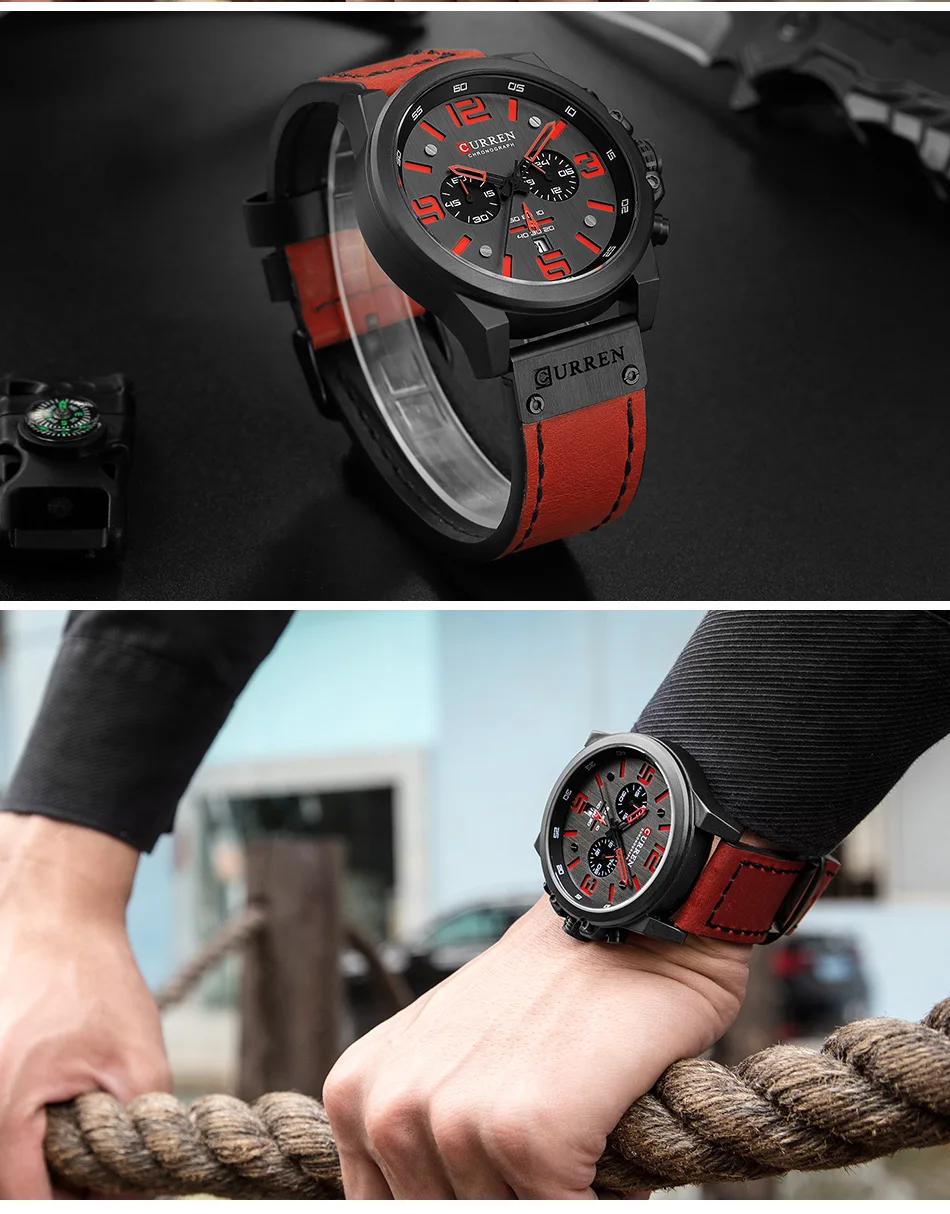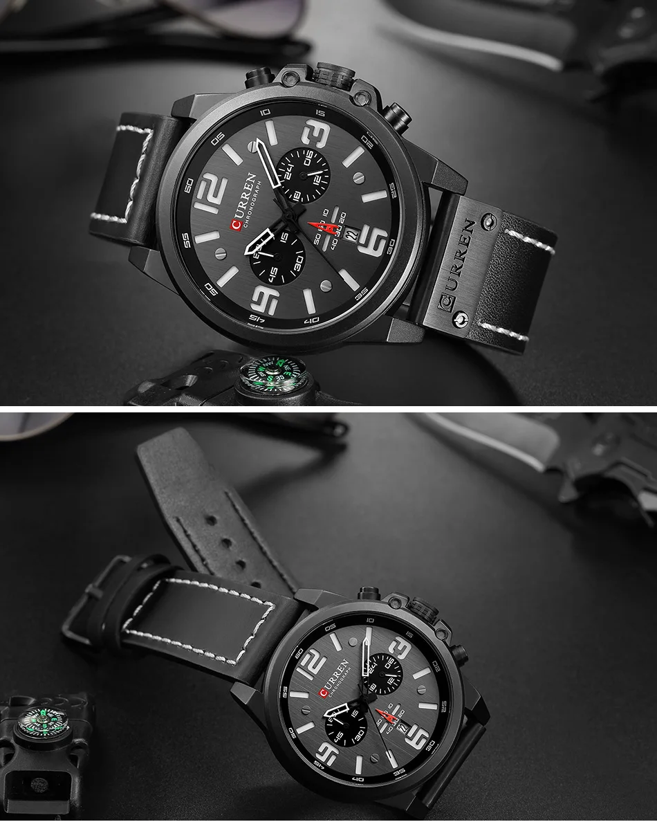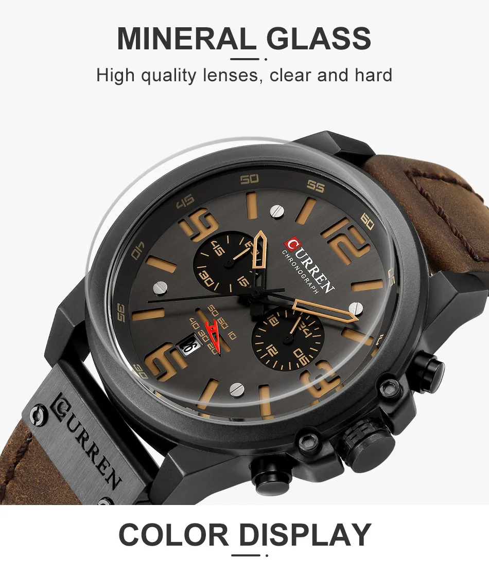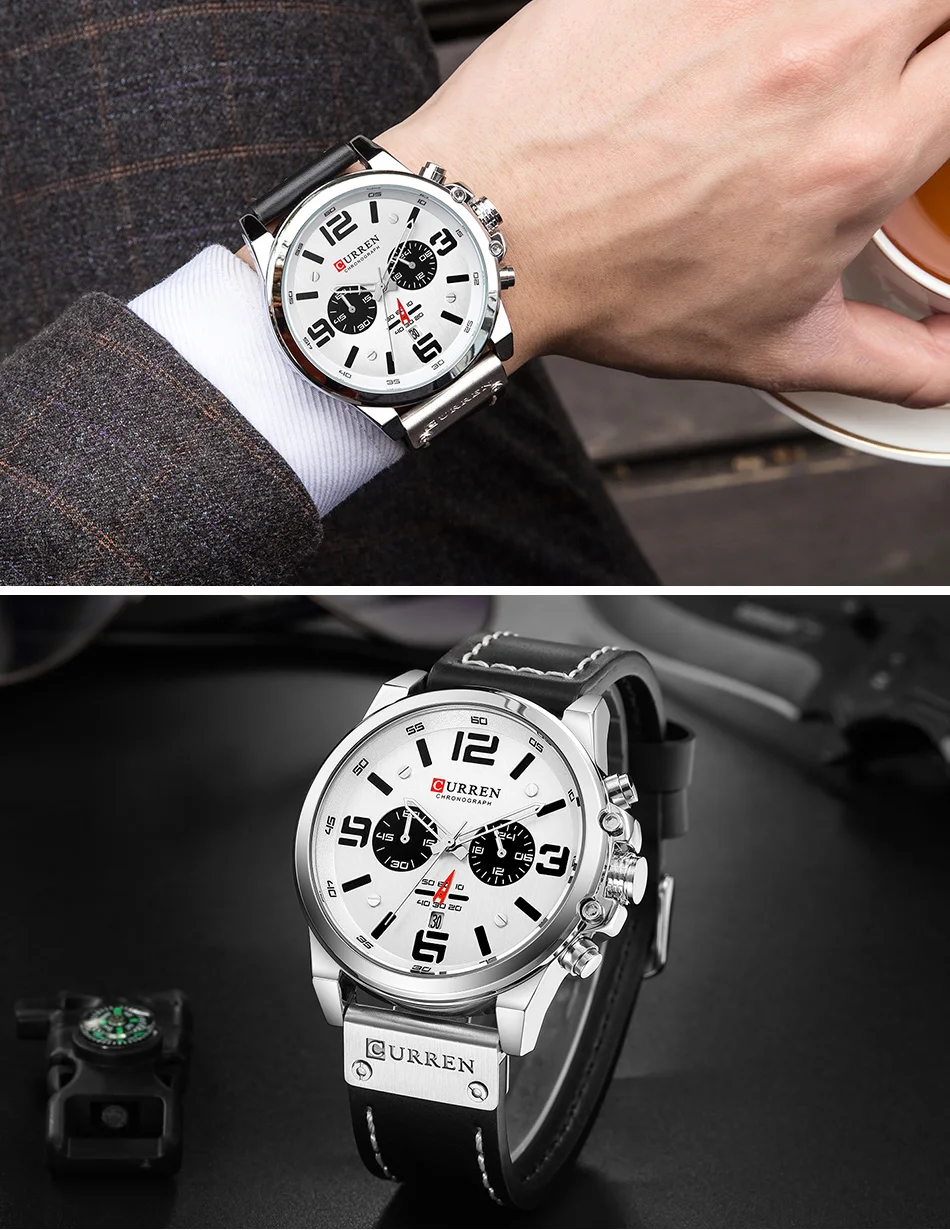 Часы CURREN Мужские кварцевые, модные повседневные спортивные водонепроницаемые в стиле милитари, с кожаным ремешком, с датой