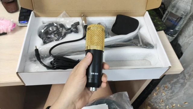 Получила за 3 дня, доставкой из России. Курьер Сдэк принес домой. Коробка целая, есть слегка замятость с одного края, но это если слишком придираться. Микрофон целый, работу проверила - исправный. Все к нему комплектующие в оригинальных запаянных пакетах. Спасибо продавцу! В компьютер встроенная аудиокарта - с ручным усилением там звук становится лучше. Но шум вокруг тоже слышен. Как в работе расскажу позже, когда подарю.