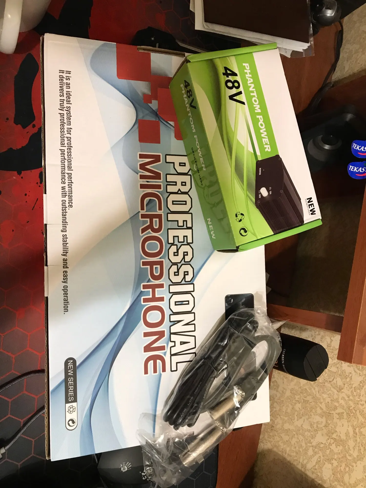 микрофон хороший, все пришло достаточно быстро, дней двадцать, все подключил, все работает, было упаковано не очень хорошо, коробка с фантомным питание была просто примотана скотчем к коробке с микрофоном, комплект полный, как в описании, микрофон, провода, поролонка, стойка, попфильтр, советую брать, продавец не общительный, сообщение мое так и не прочитал за весь период доставки, а так брать можно, тем более за такую сумму 35$ я считаю хорошем приобретением, если уж совсем нет микрофона, тем более со стойкой очень удобно.