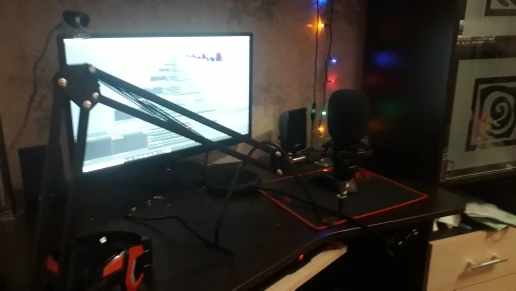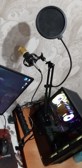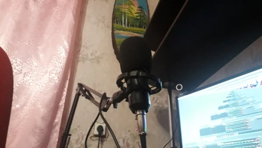 Хороший микрофон, с хорошей настройкой можно избежать шумов. А так с усилением он записывает все звуки которые есть в помещении) Держатель прочный и форму не теряет, все стоит норм. Пришло кст за 2 дня в Чебоксары