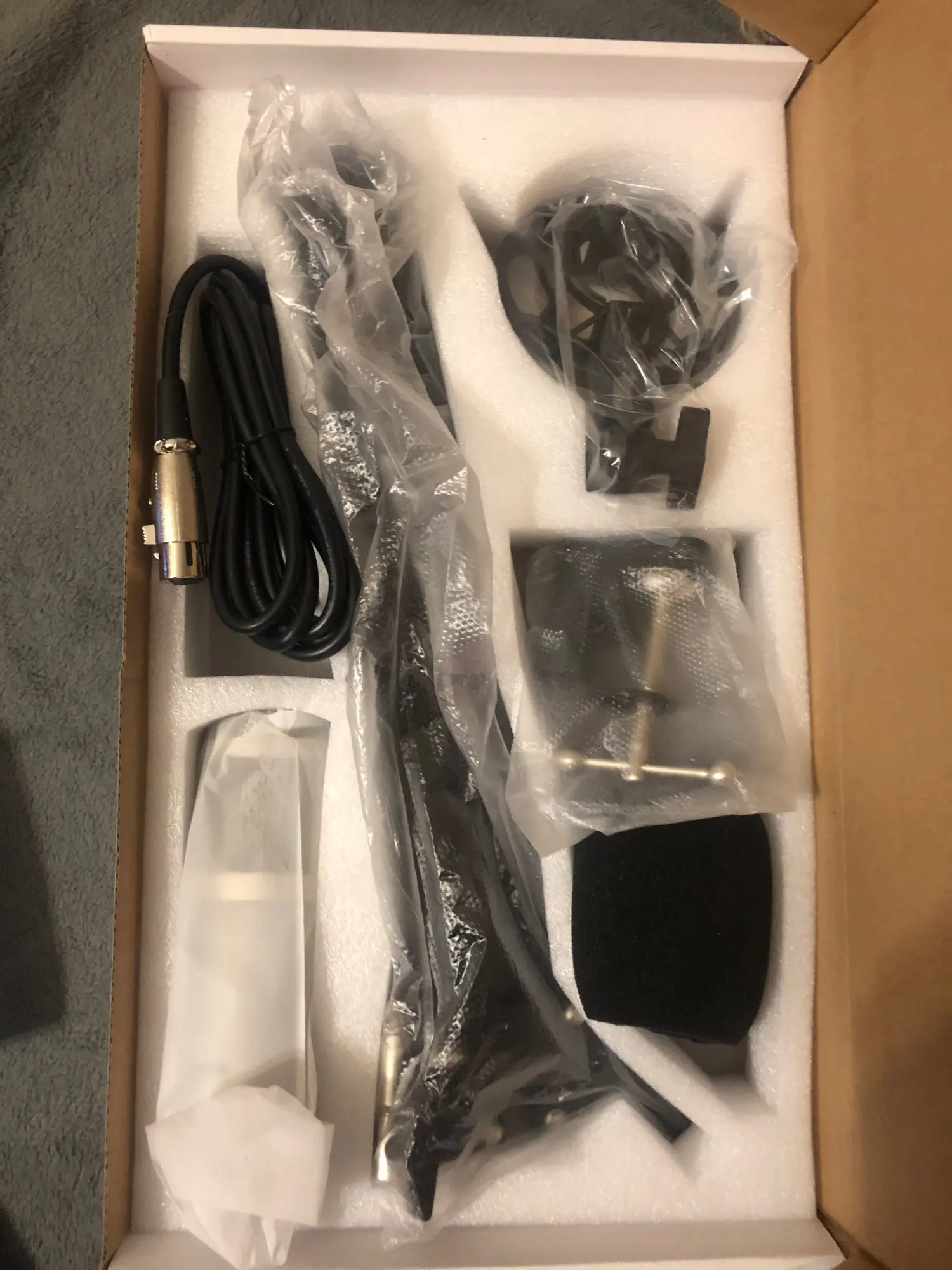 Доставка немного затянулась, а так все пришло. Заказал микрофон с фантомным питанием, поп фильтром и подставкой. Посылка пришла почтой России. Микрофон и все остальное пришло без повреждений, а вот коробка была сильно повреждена. После настройки и подключения качество микрофона хорошее. Совет на будущее, не покупайте микрофон без фантомного питания, иначе у вас плохо будет работать микрофон и он будет тихим. Доставка была долгой так как на складе отсутствовало то самое питание из-за чего пришлось немного дольше подождать. Перёд покупкой уточняйте у продовца. Общение с пррдовцом немного долгое. Хоть и разница у нас со временем всего 1 час. Приходилось ждать по дня 2-3. В целом продуктом доволен. Рекомендую