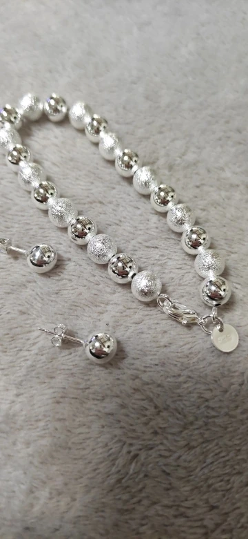 Ожерелье и браслет не серебристые. Возможно, они просто покрыты. После всего недели использования Серебристый цвет исчезнет.