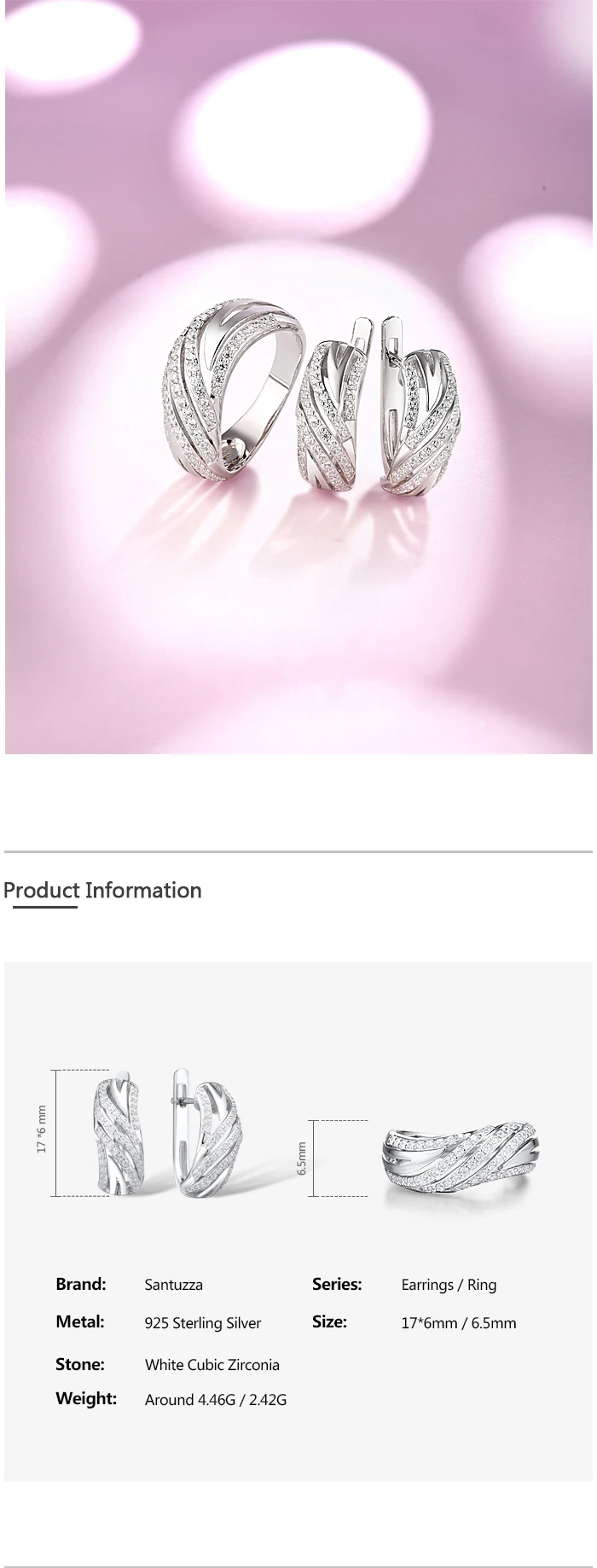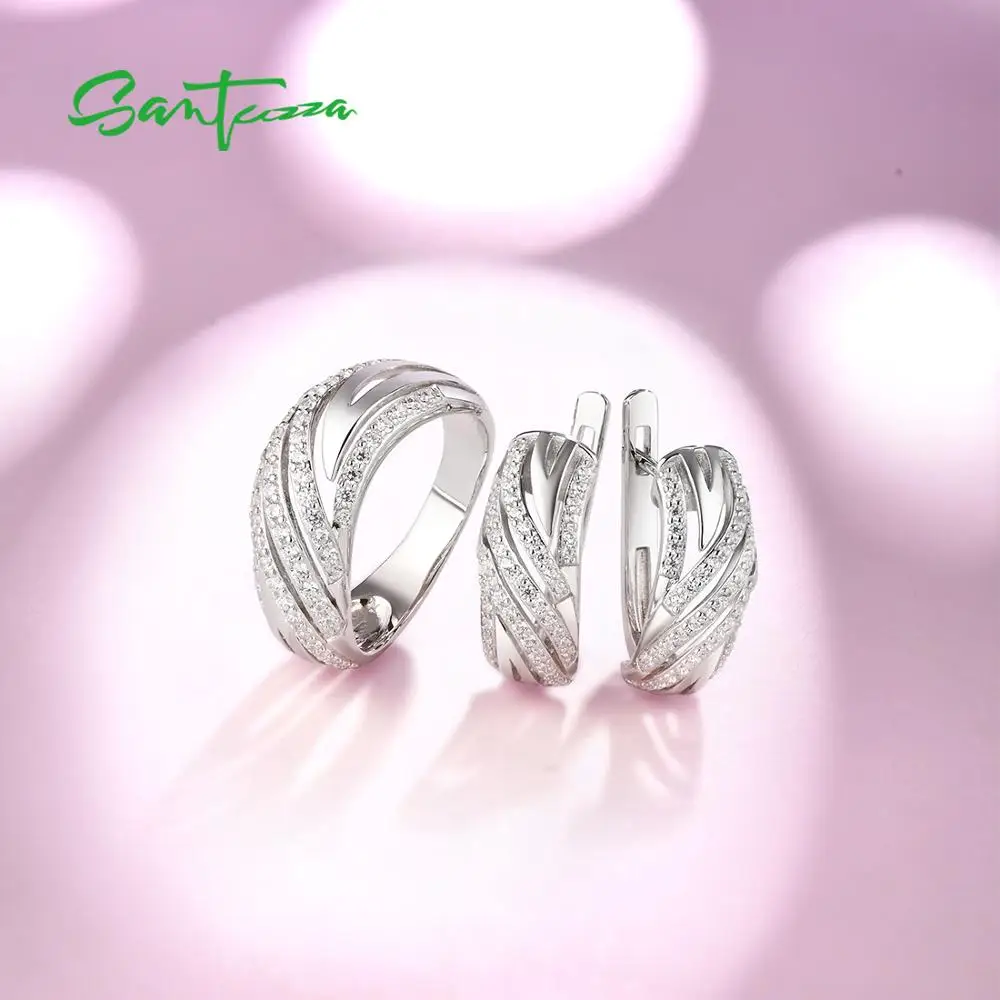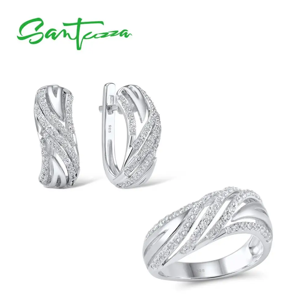 Кольцо и сережки из серебра 925 пробы с блестящим белым кубическим цирконием