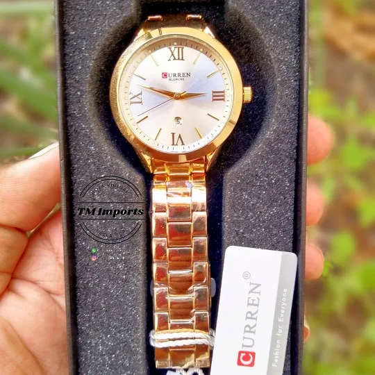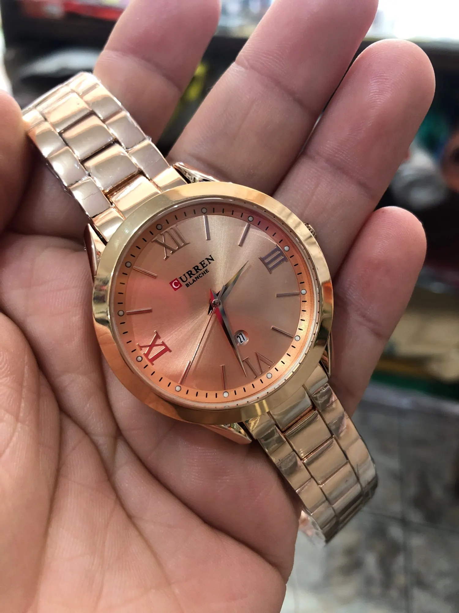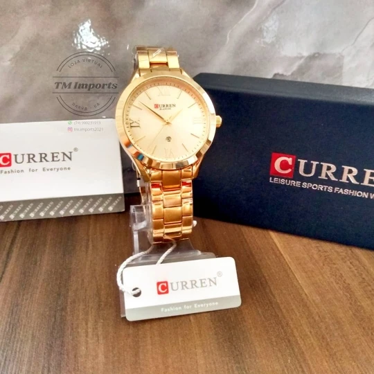 Часы CURREN женские, брендовые роскошные золотистые классические с браслетом из нержавеющей стали, 9007