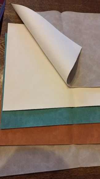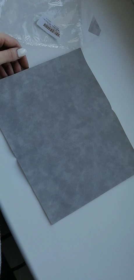 Наконец я его заказл, чтобы освободить место в корзине. Дермантин нормального качества, можно использовать для поделок и творчества. У материала нет структуры кожи, если кому-то она требуется. Обратите внимание - по размеру на 1.7 см меньше чем лист A4.