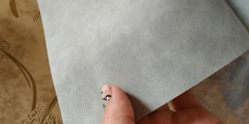 Заказала второй раз другие цвета. По размеру чуть меньше А4. Не тянется. По фактуре напоминает нубук с замшей. Для кукольных ботиночек брала, сделала с уплотнением, но тогда материал становится жёстким. Клей- пистолет к замшевой части не очень прилипает.