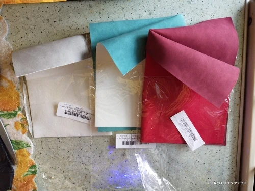 Заказ получила в Латвии на 61 день. Ткань соответствует описанию. Цвет как на фото. Небольшая разница в размере серый, бордовый, бирюзовый 21 x 28 см, черный 21 x 29 см, коричневый 21 x 30 см.