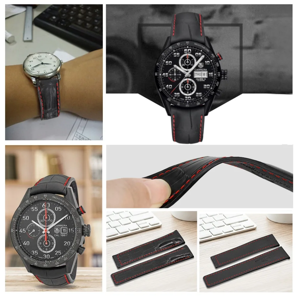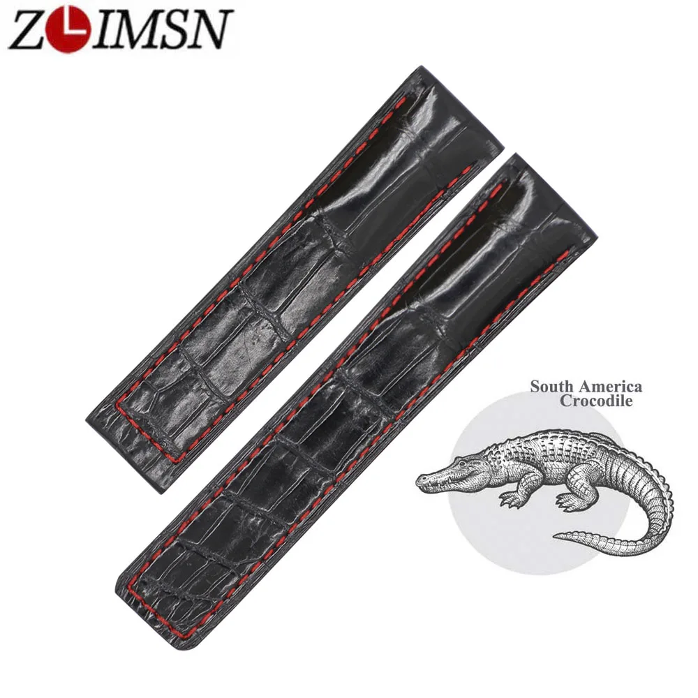 Ремешок ZLIMSN из крокодиловой кожи под заказ, подходит для часов TAG Heuer Autavia CARRERA 20 22 24 мм, ремешок из крокодиловой кожи