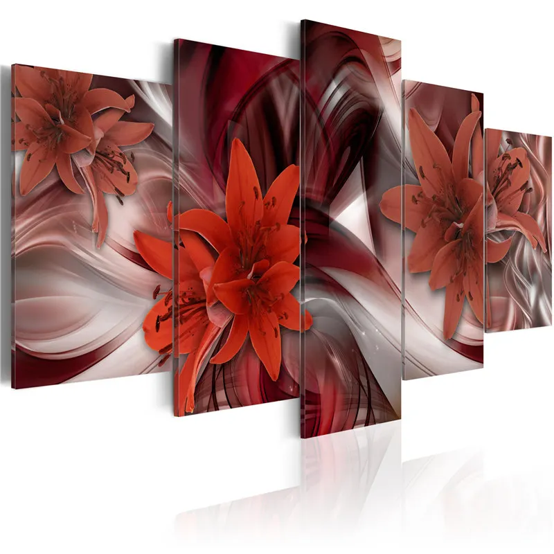 5 шт., яркие цветочные картины на холсте, лилии, плакаты и принты, современное настенное художественное украшение, картины для спальни, гостиной