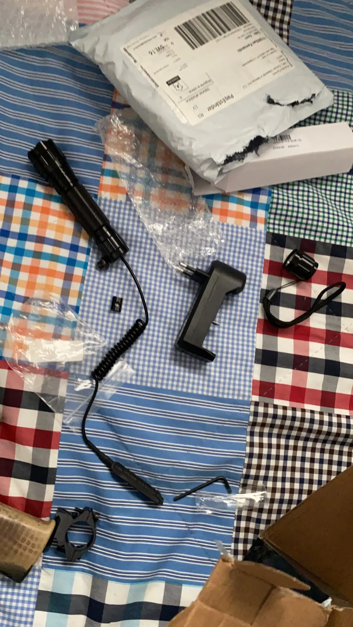 Очень быстрая доставка. Фонарь светит ярко, ослепляет. Если с обычной кнопкой, то только вкл/выкл. На выносной кнопке пока держишь - горит, отпустил - погас. Без всяких стробоскопов, SOS и прочего говна. Винты очень длинные, под шестигранник. Хорошо, что в запасе были покороче. Кнопка достаточно длинная, долго думал куда ее приколхозить (поставил на рукоятку). Фокусировки луча нет, да и пофиг. Линза немного мутная, но тоже особо не влияет на работу фонаря. Своих денег такой комплект стоит.