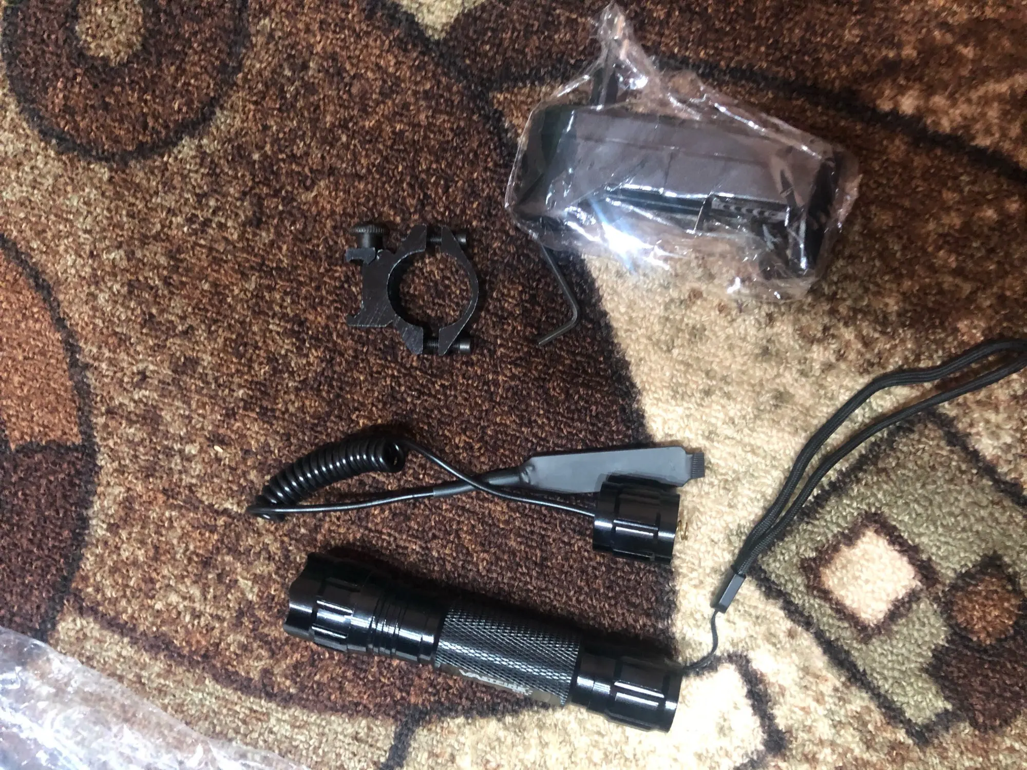 не самая лучшая покупка, качество исполнения оставляет желать лучшего, цену такого набора с фонариком вижу не более $5. крепление на планку Пикатинни плохое, его перекашивает при затяжке, болты кольца слишком длинные, упираются в винт крепления к планке, чем мешают креплению фонаря к ней. выносная кнопка отстой, не имеет режима постоянного свечения, для того, что бы фонарик светил, надо держать кнопку постоянно, что не всегда удобно, вернее это просто неудобно, там должен быть микропереключатель, а не подпружиненная контактная пластина. свет фонарика слабый, корпус не выглядит надежным.