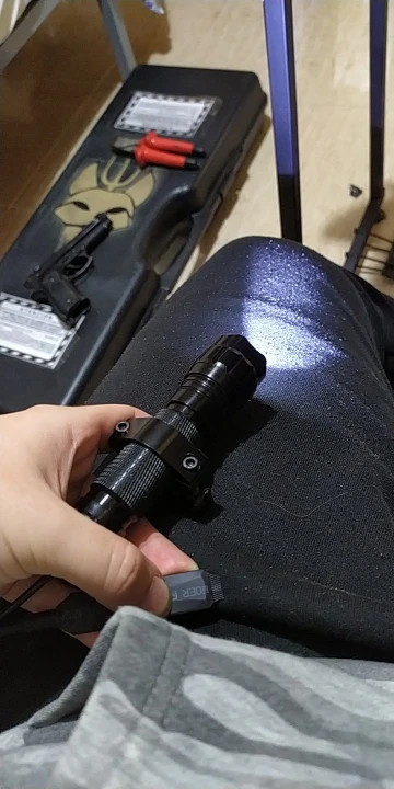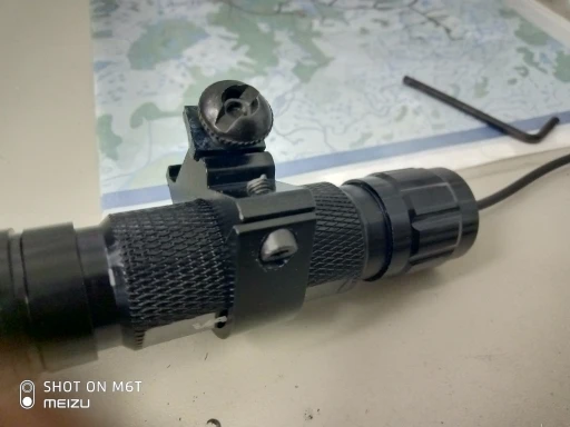 фонарик светит, выносная кнопка работает. винт, фиксирующий прижимное кольцо на креплении слишком длинный, не даёт зафиксировать крепление на пиккатини. надо подрезать