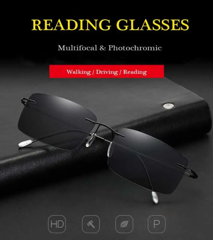 Ультратонкие титановые фотохромные Мультифокальные очки для чтения ...