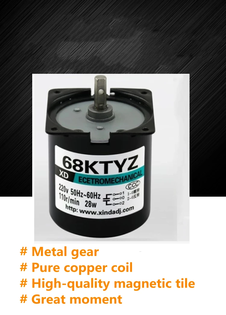 Характеристики: все медные проволочные шестерни, фиксированная скорость, прямой доступ к бытовой технике 220 В может быть, малый размер, крутящий момент, медленная скорость