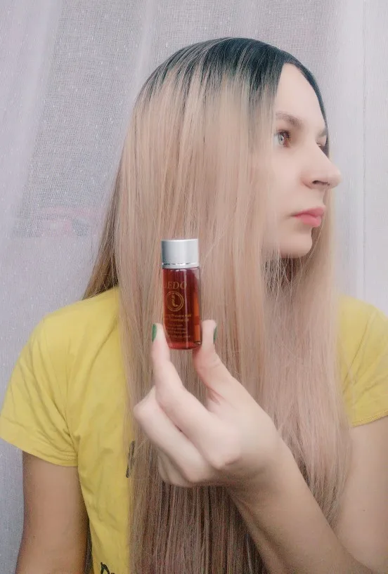 Масло способствует смягчению волос и восстановлению поврежденных кончиков. Обеспечивает полноценное питание для корней волос, делает волосы сильными, блестящими и мягкими. Помогает предотвратить выпадение волос и способствует их росту. Показания к применению: Медленный рост волос, чрезмерное выпадение, хрупкость и ломкость, секущиеся кончики, жесткие, неухоженные, тусклые волосы и т. д. Способствует защите волос. Могу рекомендовать людям у кого сухие волосы, если у вас жирные волосы то масло будет усиливать этот эффект. Мне пришёл не большой стеклянный бутылек 20мл. Запах приятный Способ применения: в ладонь налить шампунь, затем добавить не много масла( на 100мл шампуня -3мл масла) перемешать, нанести на волосы, смыть водой. Можно добавить сразу в бутылку с шампунем. Средство понравилось.