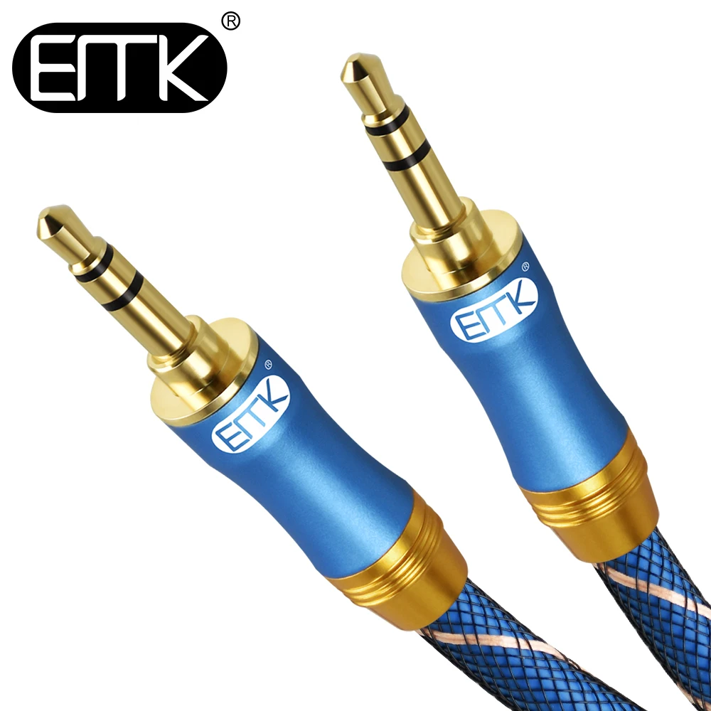 Аудиокабель EMK с разъемом 3,5 мм на 3,5 мм, Aux кабель с двумя штекерами, 0,5 м, 1 м, 2 м, 3 м, 5 м, черный, серый разъем, 3,5 мм, кабель для телефона, автомобиля, наушников, MP4