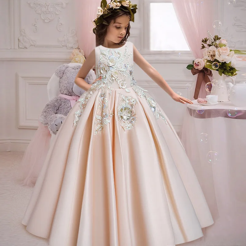 2021 Новое Кружевное платье Свадьбы платье с цветком галстук-бабочка для девочки в теннис вечерние банкет вечерние показать бальное платье платья партии