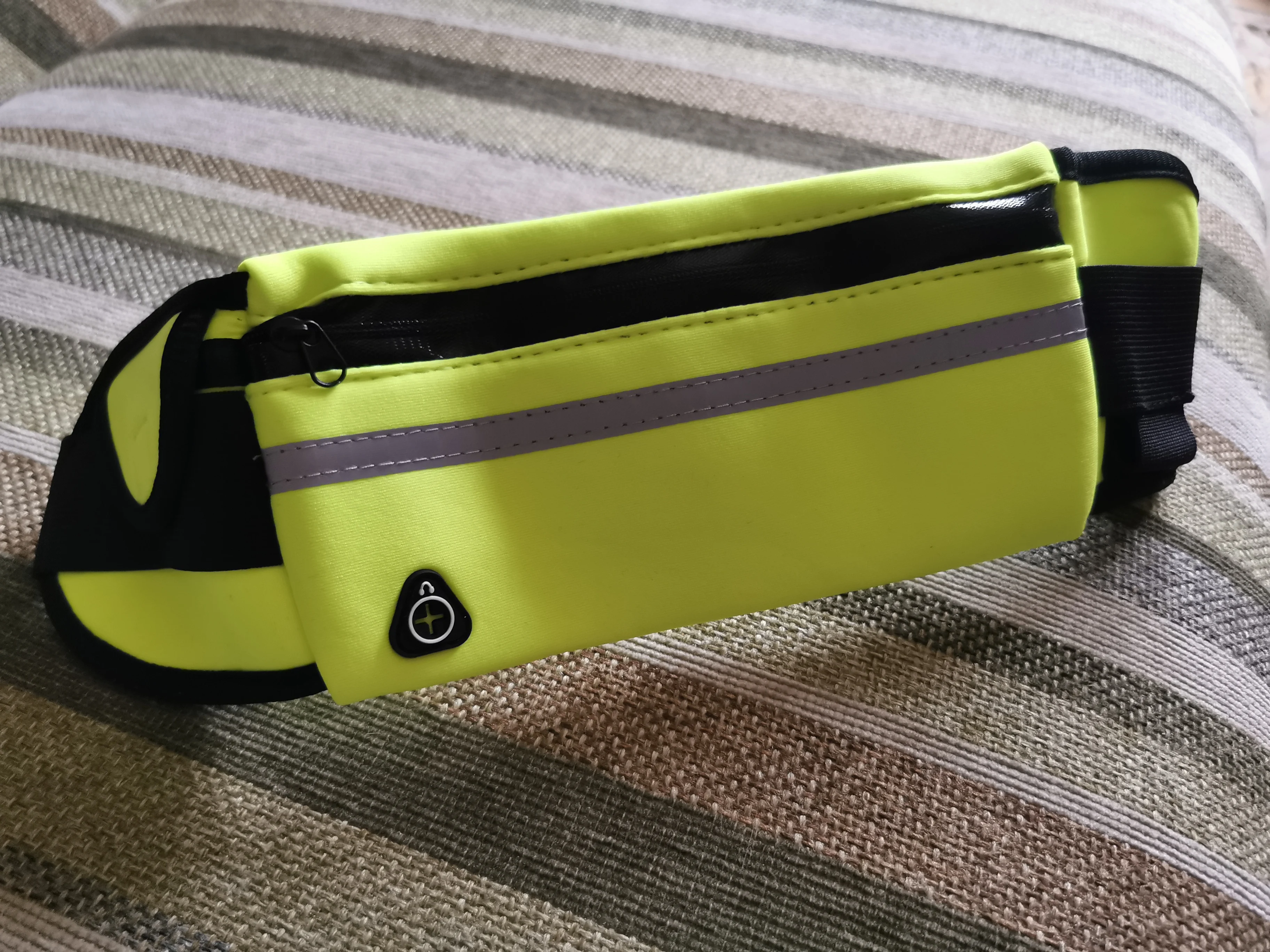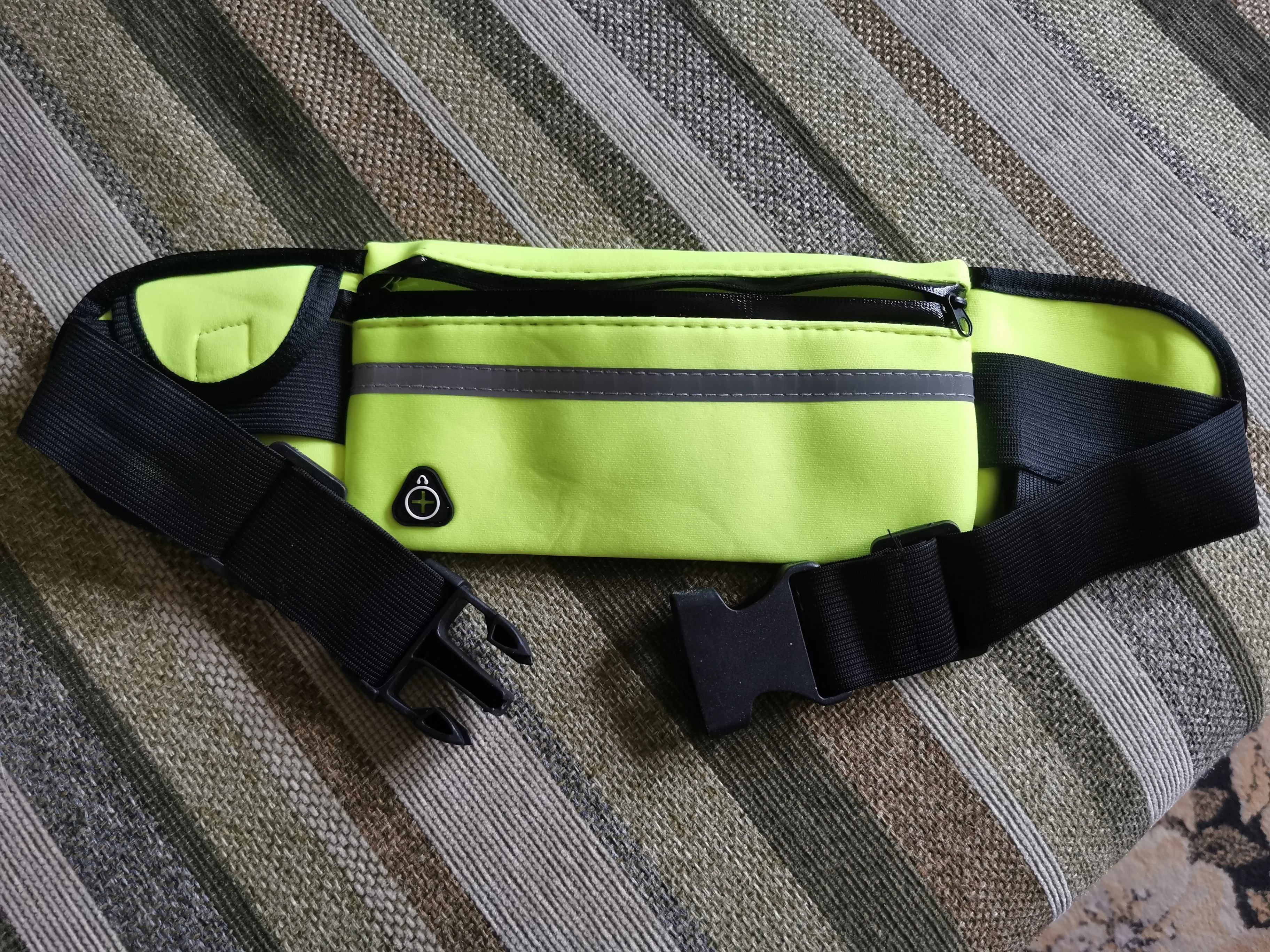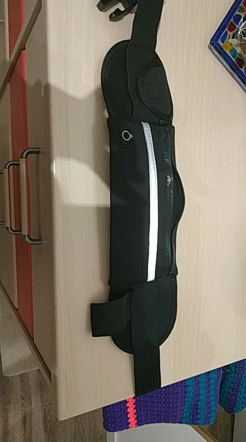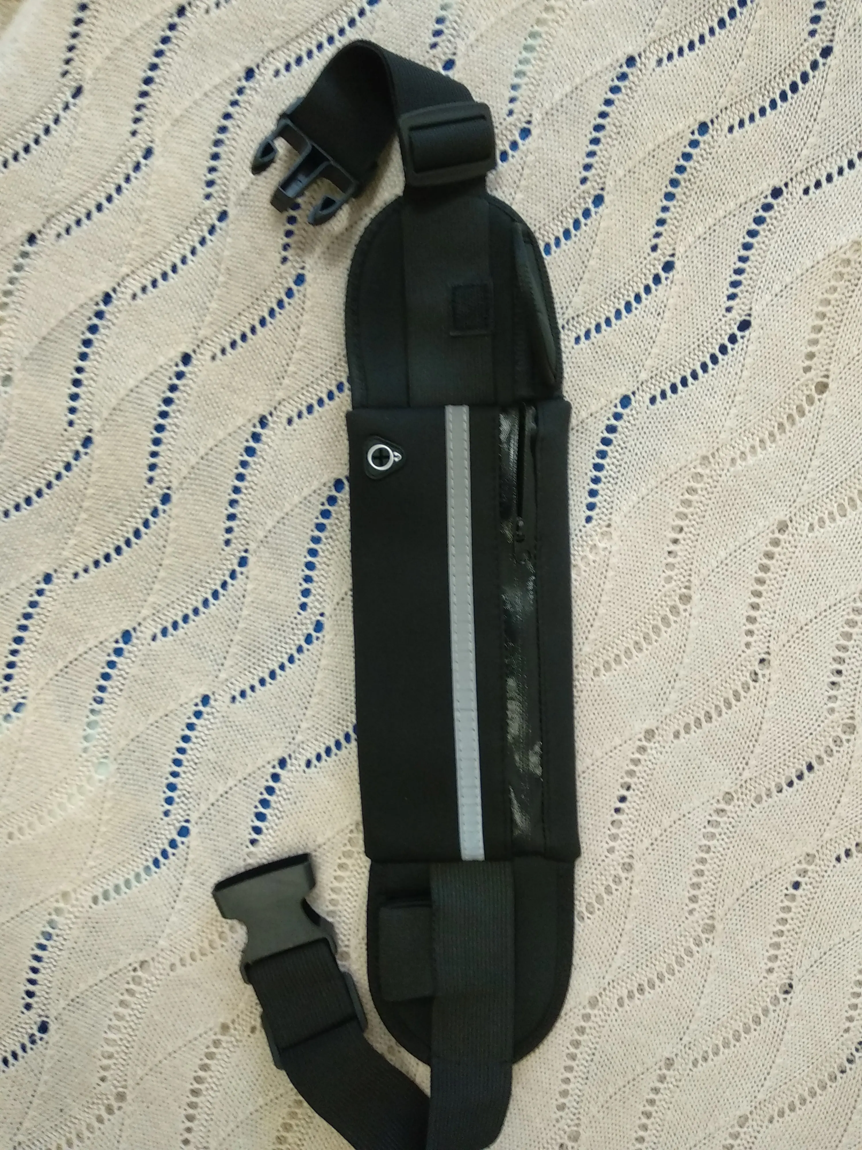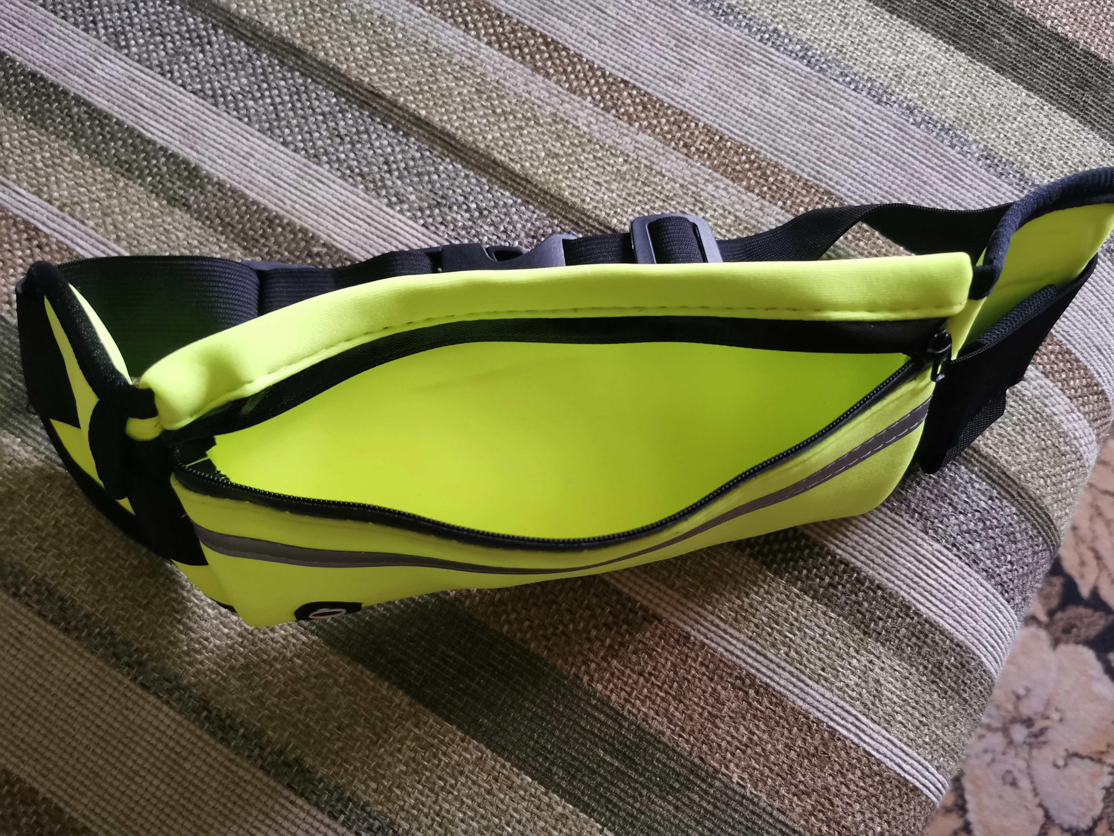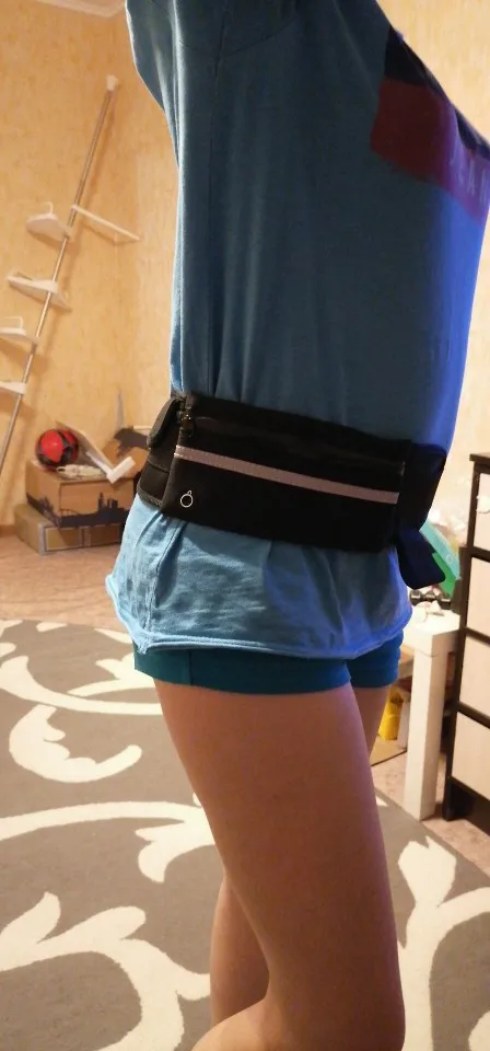 На сумке есть светоотражающая полоска, основной карман на молнии и сбоку маленький карман на липучке (пластиковую карту туда положила, но карман шире), есть отверстие под наушники. Поясная резинка регулируется. Доставка долгая - 2 месяца с момента оплаты (Россия, Ижевск). Упаковано в 2 пакета. С продавцом не общались